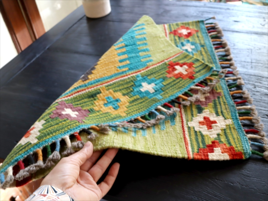 0.6-0.7mmほどの厚みのある平織りのキリムです。