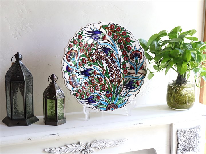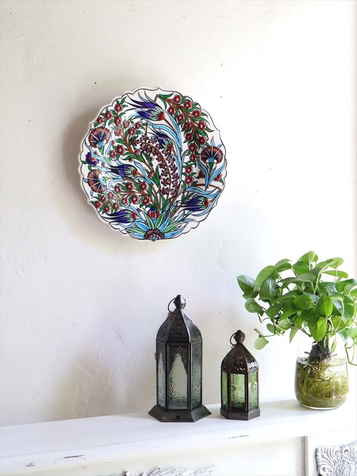 Key:置物 焼き物 陶器 皿 絵皿 飾り皿 プレート トルコ グランドバザール お土産 手書き 絵付け オリエンタル シルクロード Turkish Ceramic Iznik Ottoman Style Istanbul