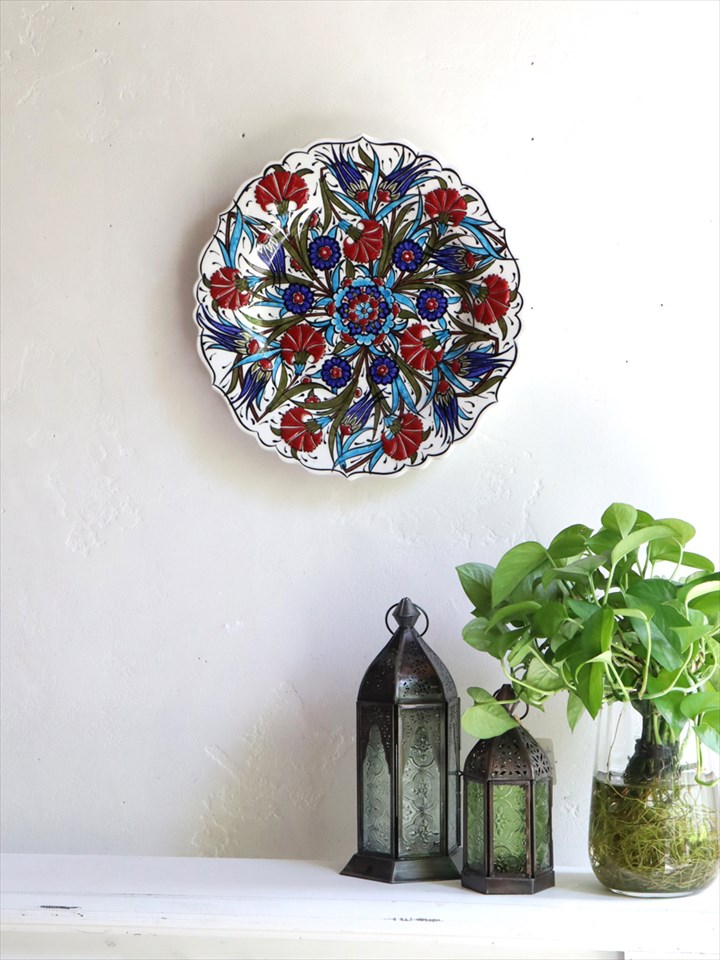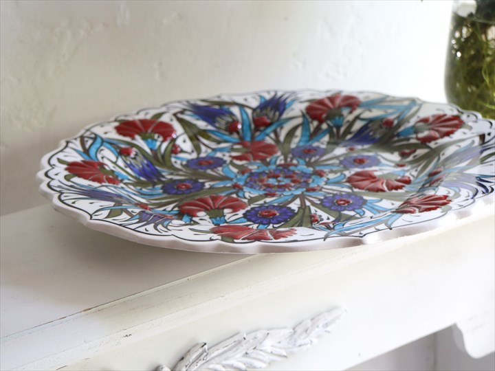 Key:置物 焼き物 陶器 皿 絵皿 飾り皿 プレート トルコ グランドバザール お土産 手書き 絵付け オリエンタル シルクロード Turkish Ceramic Iznik Ottoman Style Istanbul