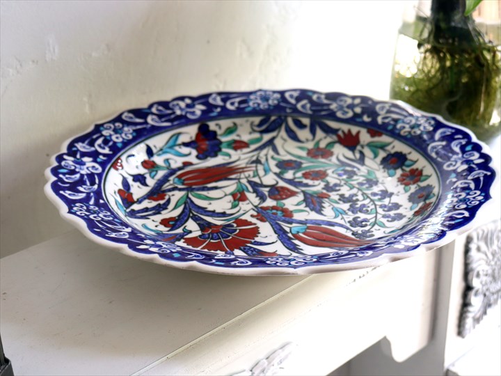 Key:置物 焼き物 陶器 皿 絵皿 飾り皿 プレート トルコ グランドバザール お土産 手書き 絵付け オリエンタル シルクロード Turkish Ceramic Iznik Ottoman Style Istanbul