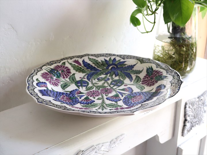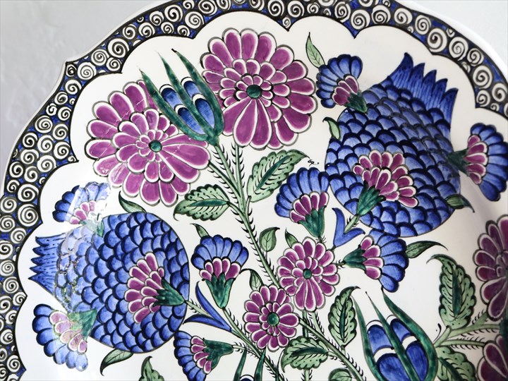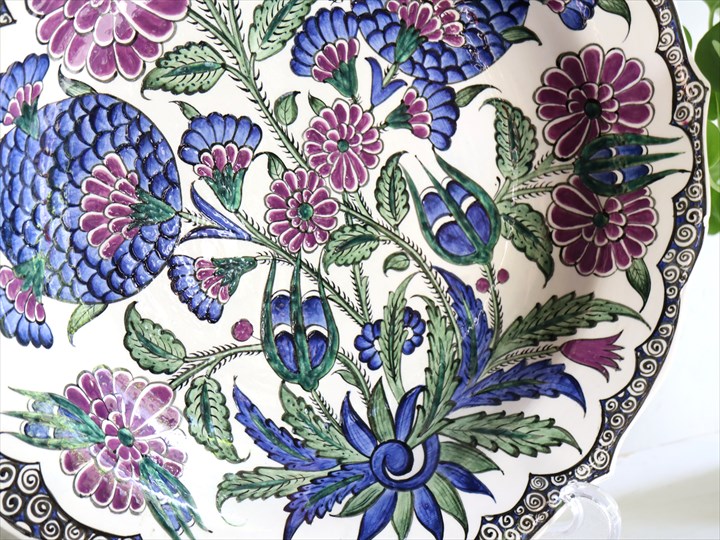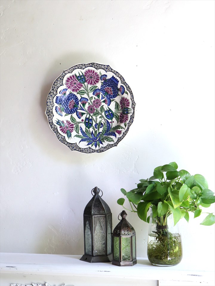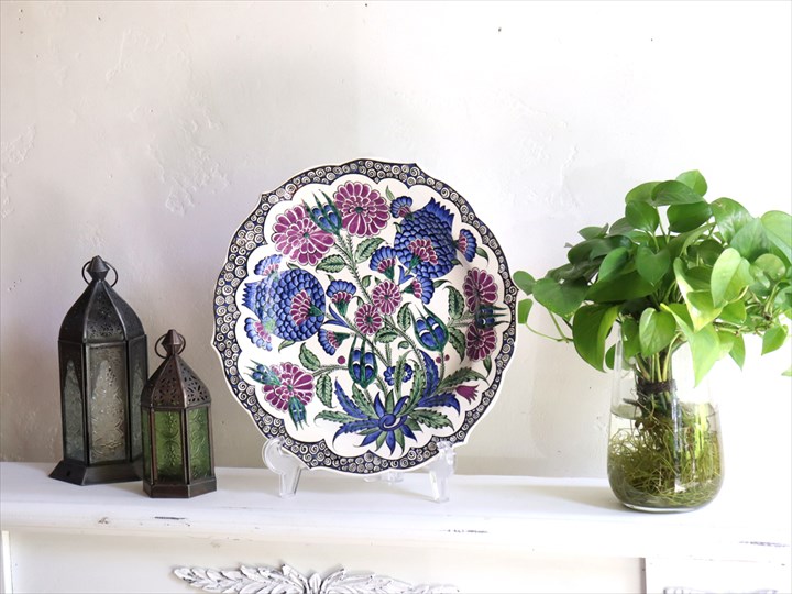Key:置物 焼き物 陶器 皿 絵皿 飾り皿 プレート トルコ グランドバザール お土産 手書き 絵付け オリエンタル シルクロード Turkish Ceramic Iznik Ottoman Style Istanbul