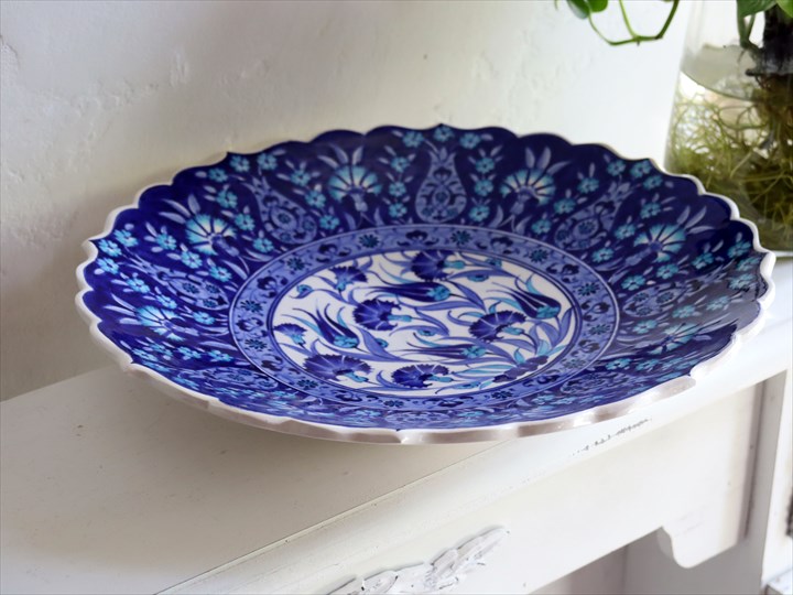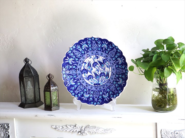 Key:置物 焼き物 陶器 皿 絵皿 飾り皿 プレート トルコ グランドバザール お土産 手書き 絵付け オリエンタル シルクロード Turkish Ceramic Iznik Ottoman Style Istanbul