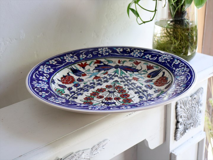 Key:置物 焼き物 陶器 皿 絵皿 飾り皿 プレート トルコ グランドバザール お土産 手書き 絵付け オリエンタル シルクロード Turkish Ceramic Iznik Ottoman Style Istanbul