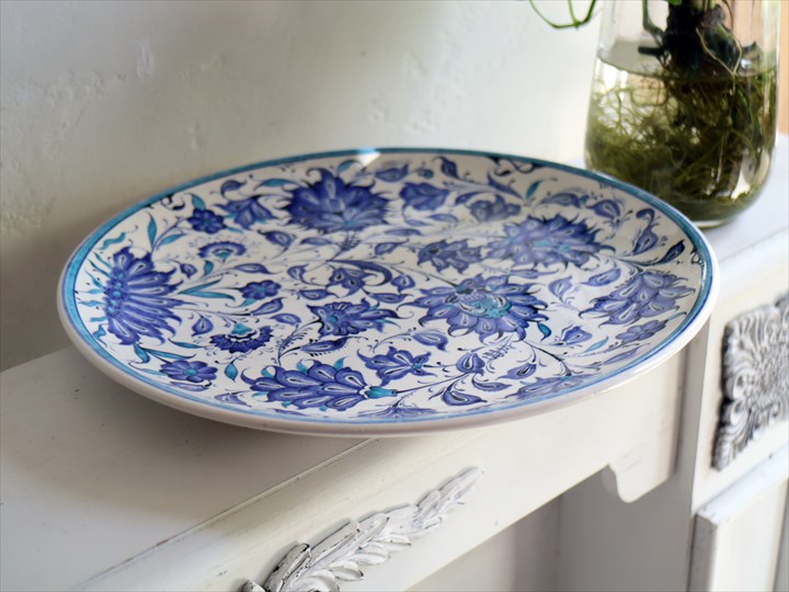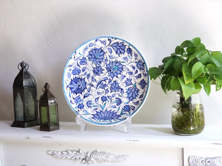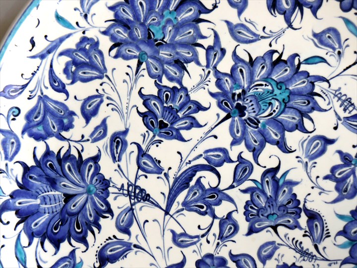 トルコの陶器産業の中心地「キュタフヤ」の工房で手書き絵付けされている飾り皿です。オスマントルコ時代からの伝統を守りつつも、新しいデザインや技術を取り入れた、21世紀の伝統工芸品です。