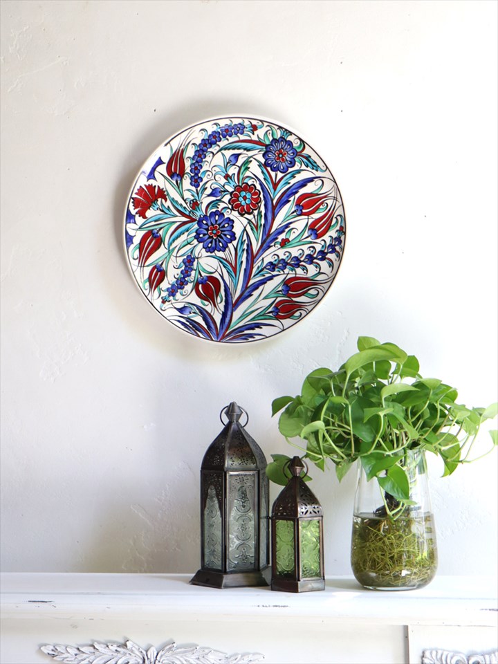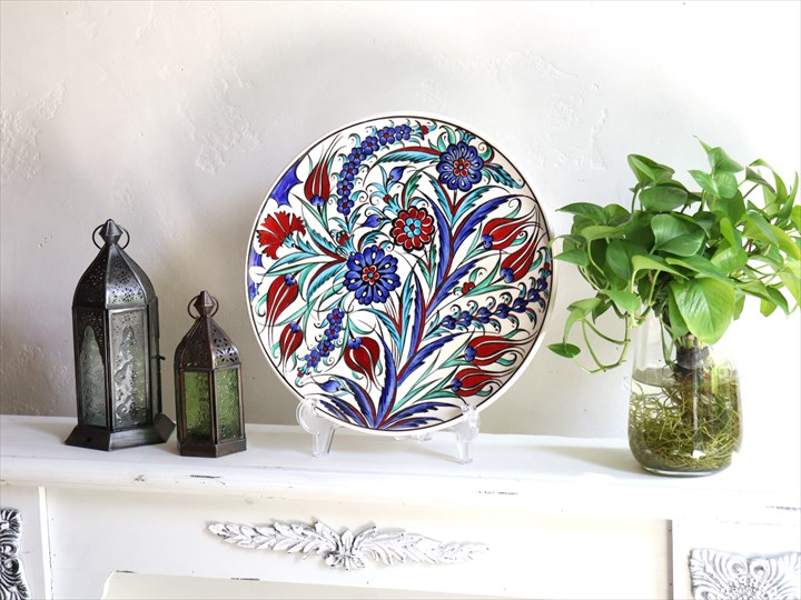 Key:置物 焼き物 陶器 皿 絵皿 飾り皿 プレート トルコ グランドバザール お土産 手書き 絵付け オリエンタル シルクロード Turkish Ceramic Iznik Ottoman Style Istanbul