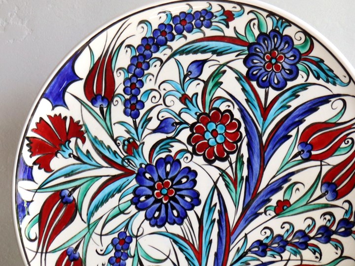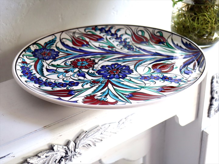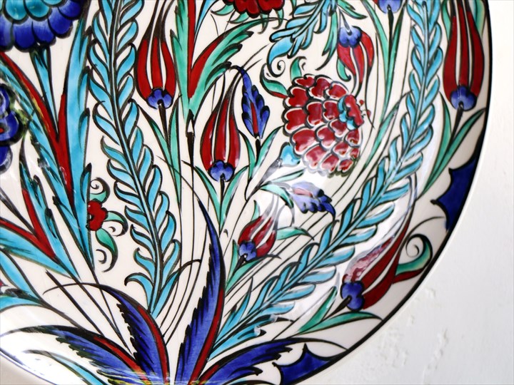 トルコの陶器産業の中心地・キュタフヤで作られています。16世紀末に完成されたとされる、オスマントルコ独特の表現で描かれたチューリップとカーネーションが描かれています。