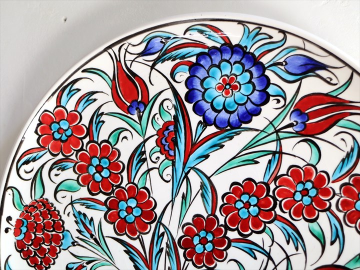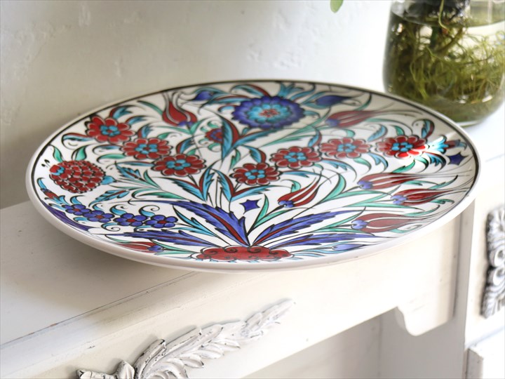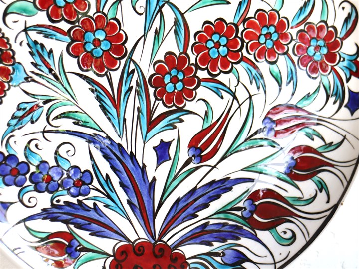 トルコの陶器産業の中心地・キュタフヤで作られています。16世紀末に完成されたとされる、オスマントルコ独特の表現で描かれたチューリップとカーネーションが描かれています。
