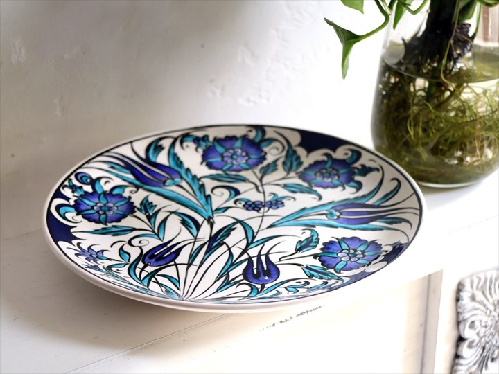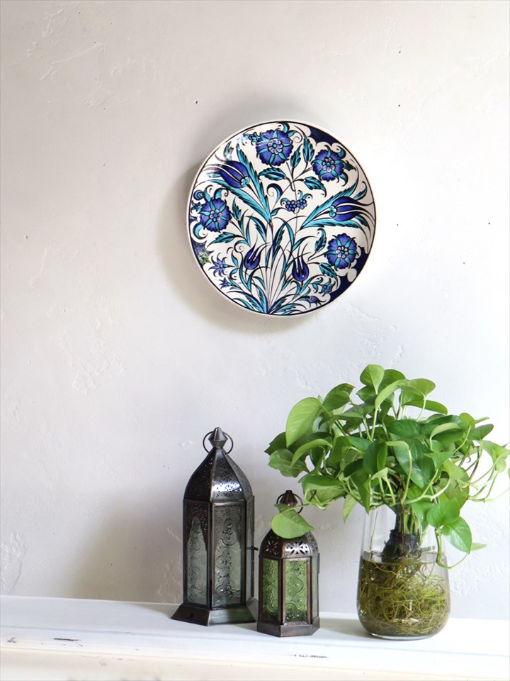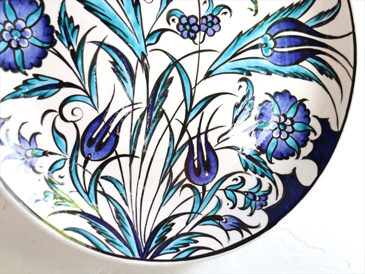 Key:置物 焼き物 陶器 皿 絵皿 飾り皿 プレート トルコ グランドバザール お土産 手書き 絵付け オリエンタル シルクロード Turkish Ceramic Iznik Ottoman Style Istanbul