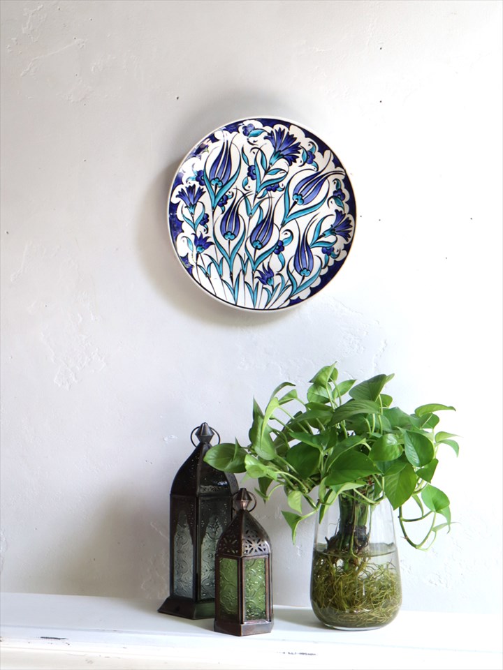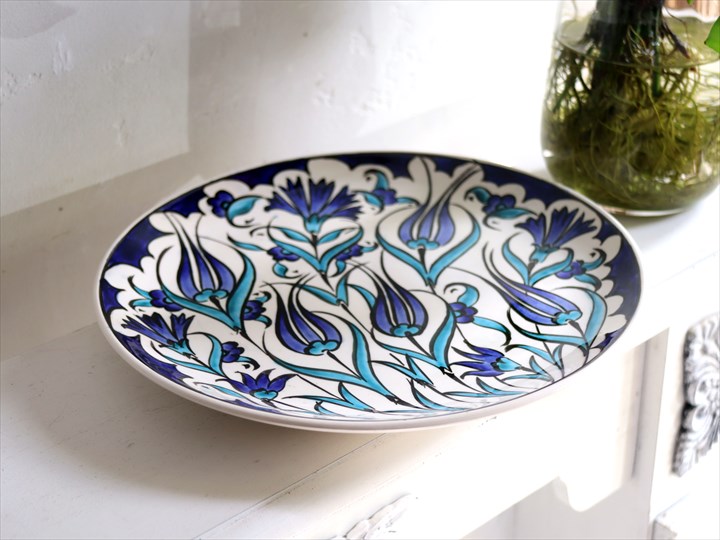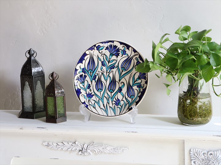 Key:置物 焼き物 陶器 皿 絵皿 飾り皿 プレート トルコ グランドバザール お土産 手書き 絵付け オリエンタル シルクロード Turkish Ceramic Iznik Ottoman Style Istanbul