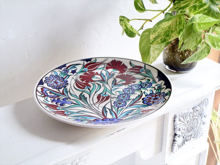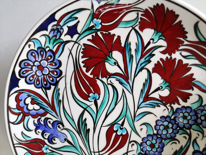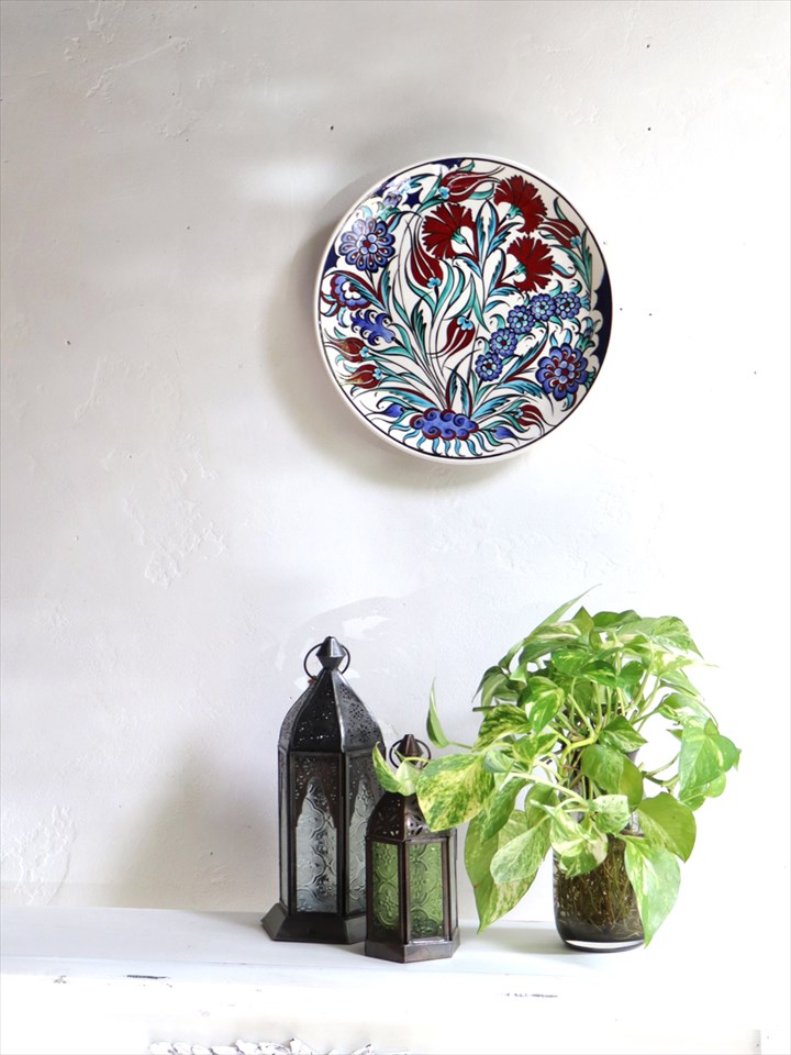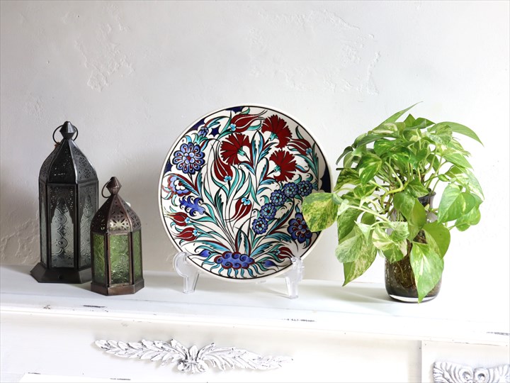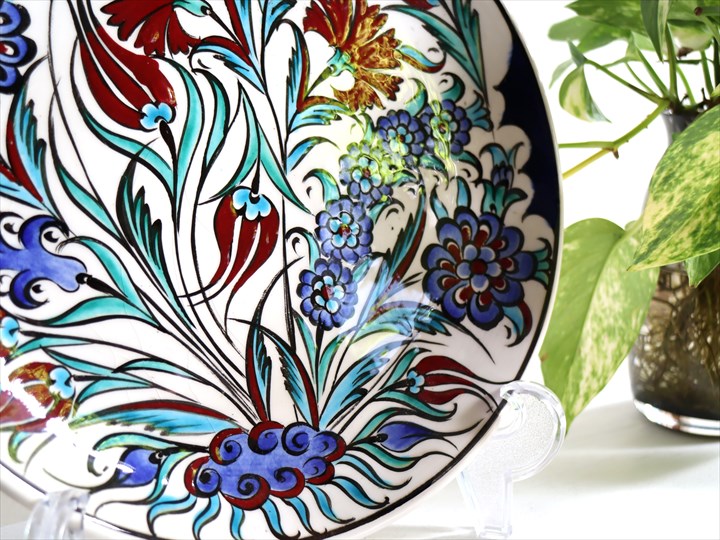 Key:置物 焼き物 陶器 皿 絵皿 飾り皿 プレート トルコ グランドバザール お土産 手書き 絵付け オリエンタル シルクロード Turkish Ceramic Iznik Ottoman Style Istanbul