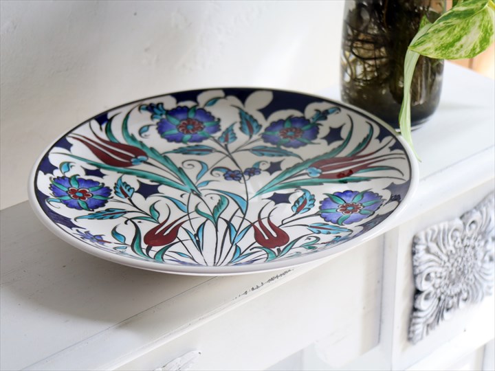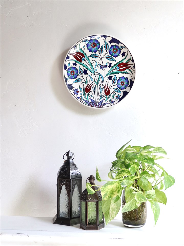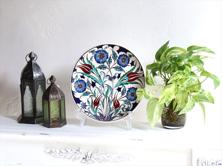 Key:置物 焼き物 陶器 皿 絵皿 飾り皿 プレート トルコ グランドバザール お土産 手書き 絵付け オリエンタル シルクロード Turkish Ceramic Iznik Ottoman Style Istanbul