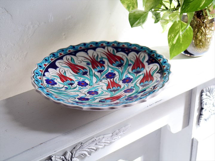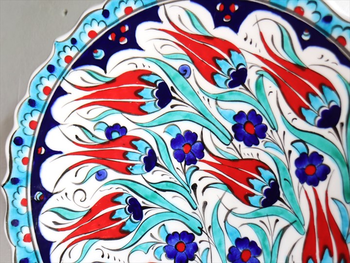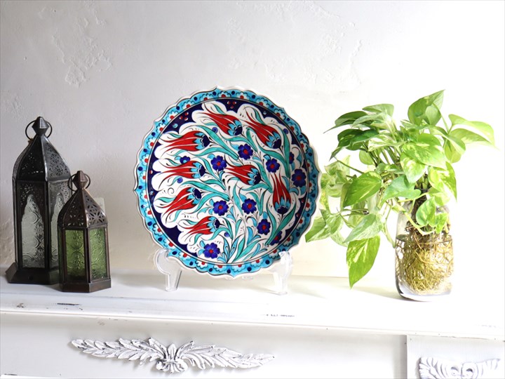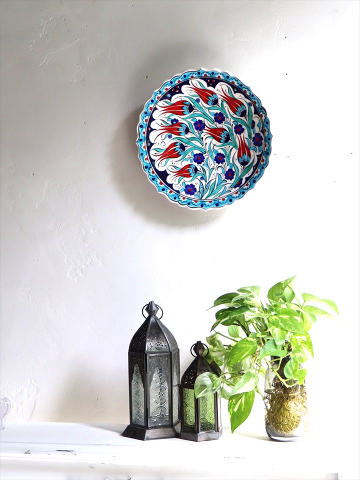 Key:置物 焼き物 陶器 皿 絵皿 飾り皿 プレート トルコ グランドバザール お土産 手書き 絵付け オリエンタル シルクロード Turkish Ceramic Iznik Ottoman Style Istanbul