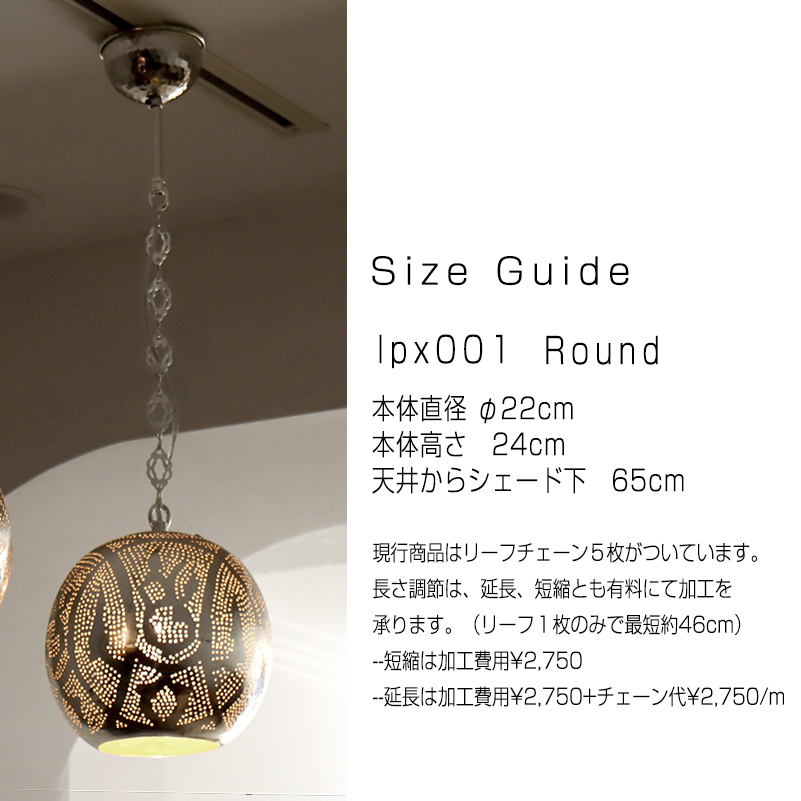 メタルを薄く加工し、コンコンと小さな穴をあけて光をデザインするランプシェードを作りました。中世から作られて来た伝統的な技法で、細工からこぼれる光が壁に映り、エキゾチックな雰囲気を楽しめます。