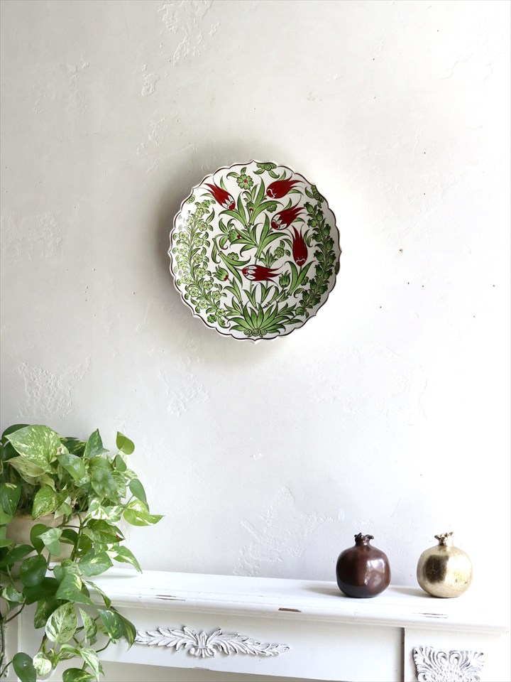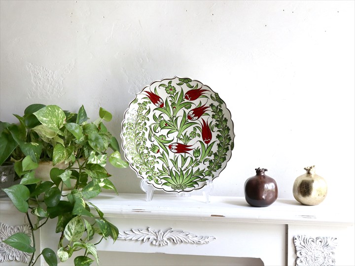 Key:Turkish pottery, Kutahya porceren,Cini,Iznik,オスマントルコ, トルコ陶器, アンティークレプリカ, 手描き絵皿, 飾り皿, 花柄