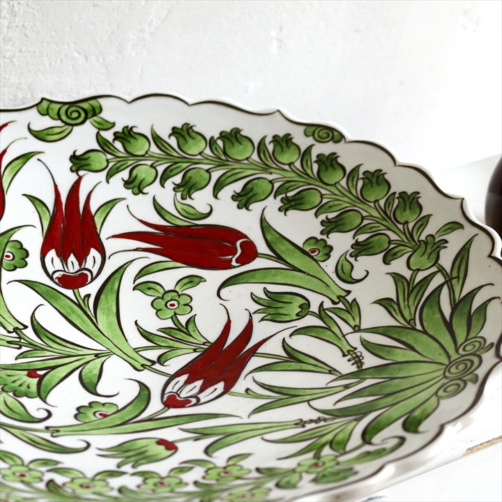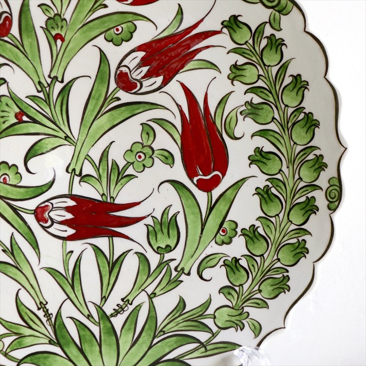16世紀後半から末にかけて制作された、華やかなオスマントルコスタイルのデザイン。チューリップ&すずらんなどが広がりながら伸びゆく様子が描かれています。鮮やかなグリーンが印象的です。