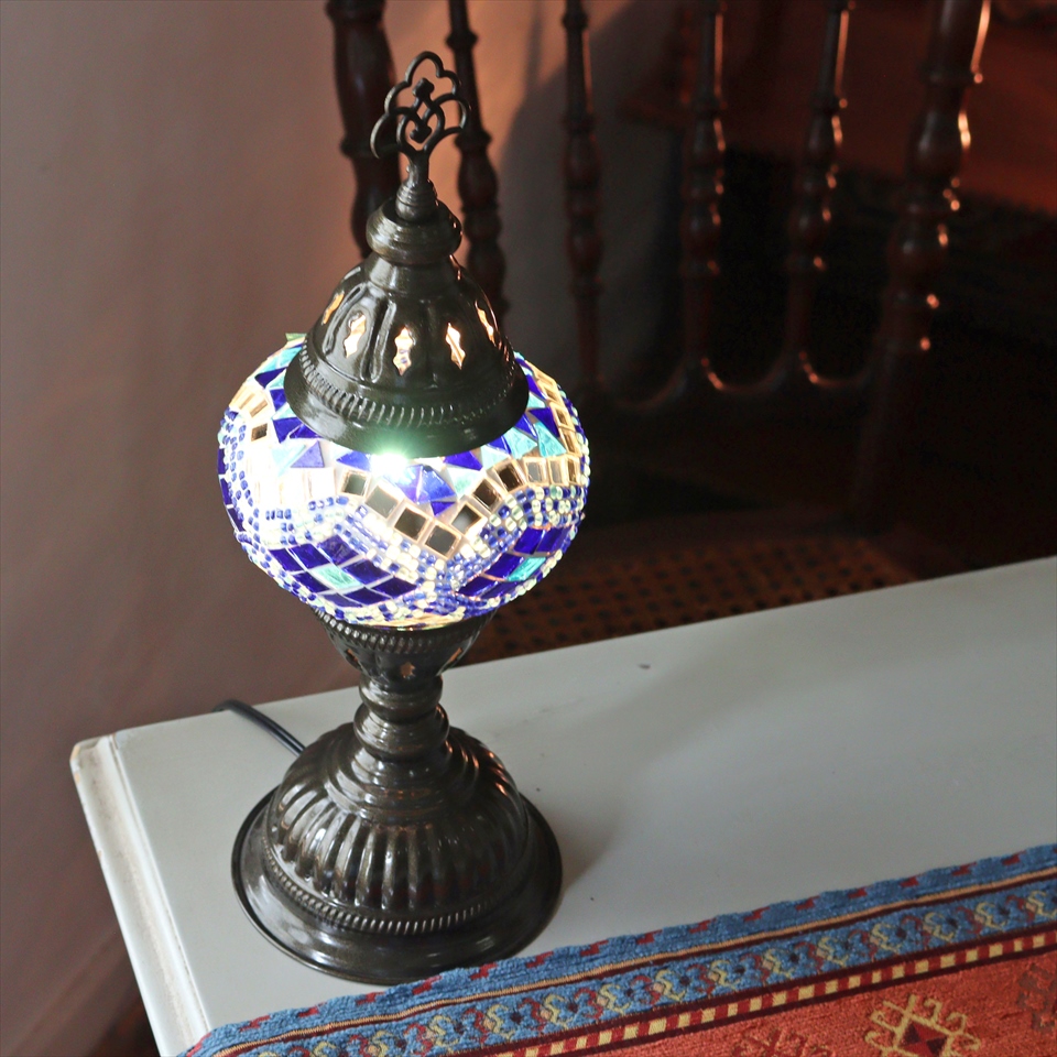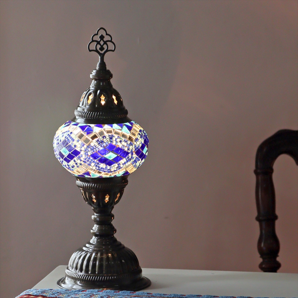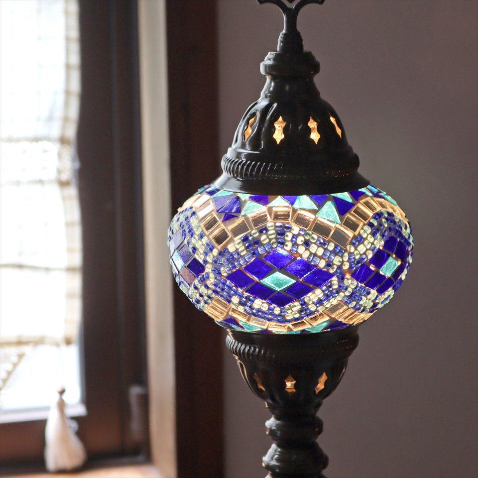 トルコランプ モザイクテーブルランプ 直径13cm 全高36cm ブルー/アーガイル