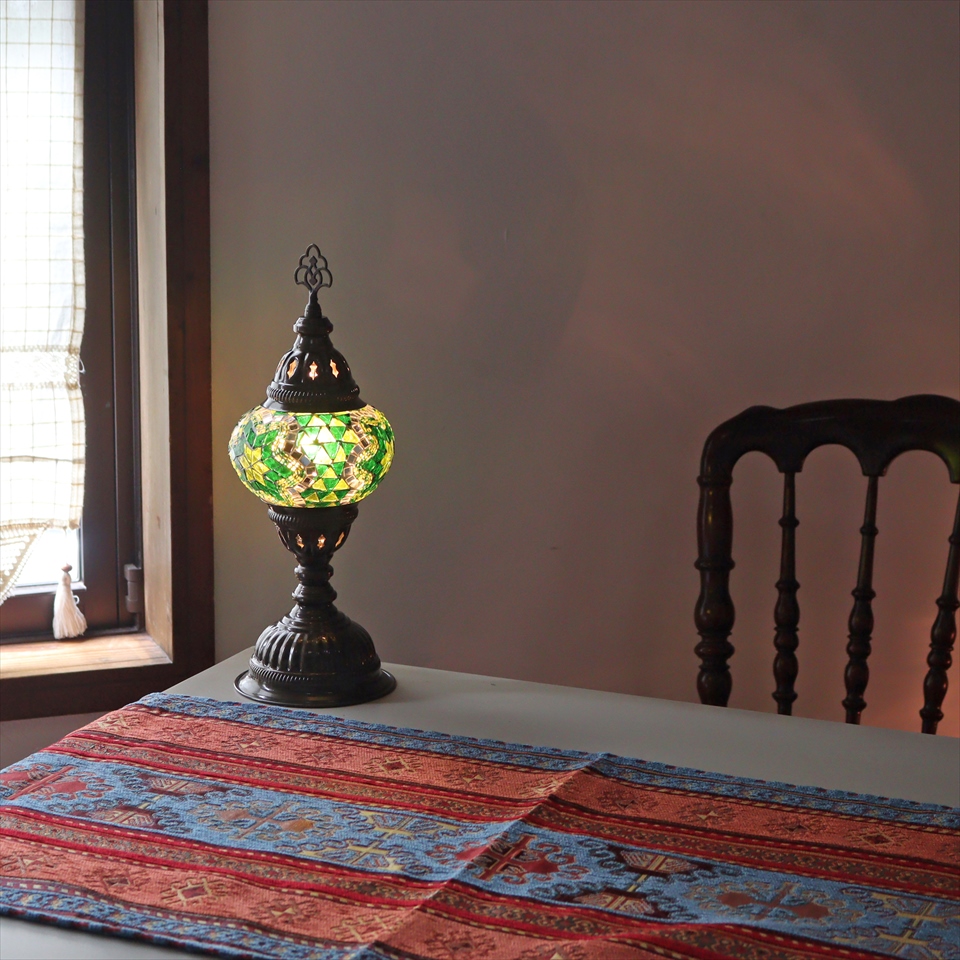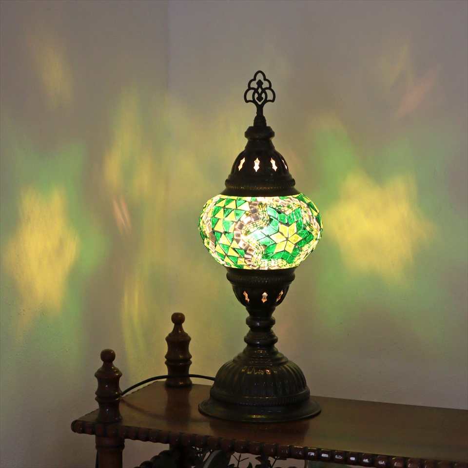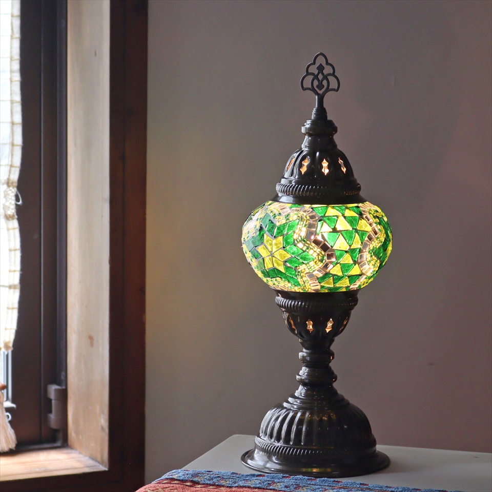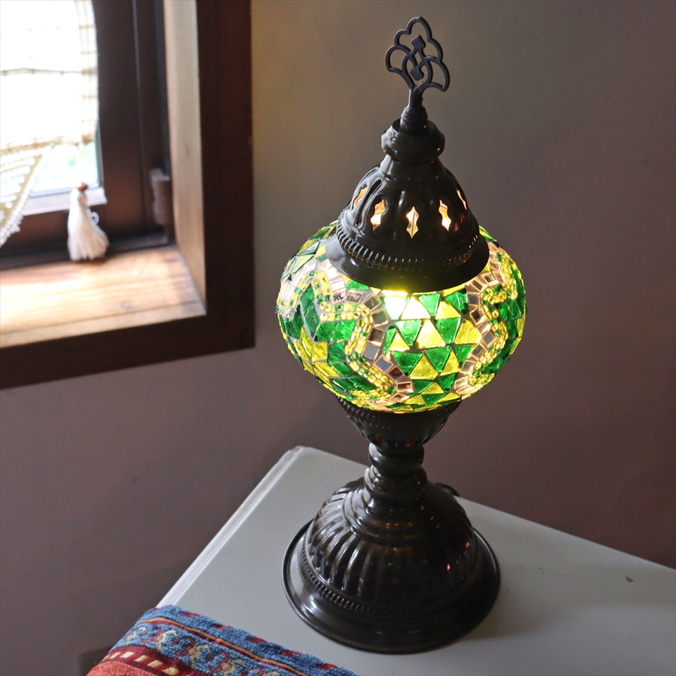トルコランプ モザイクテーブルランプ 直径13cm 全高36cm グリーン