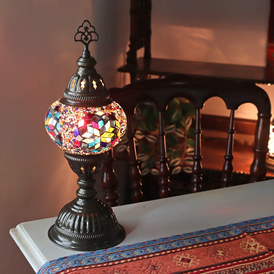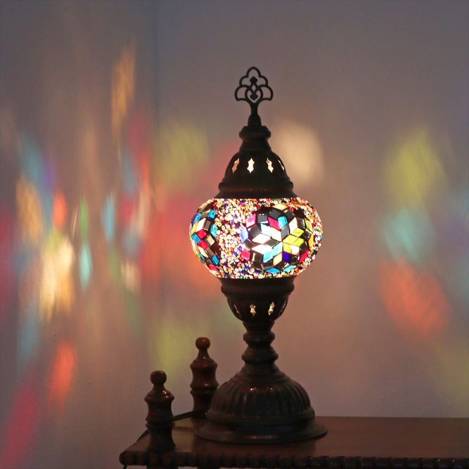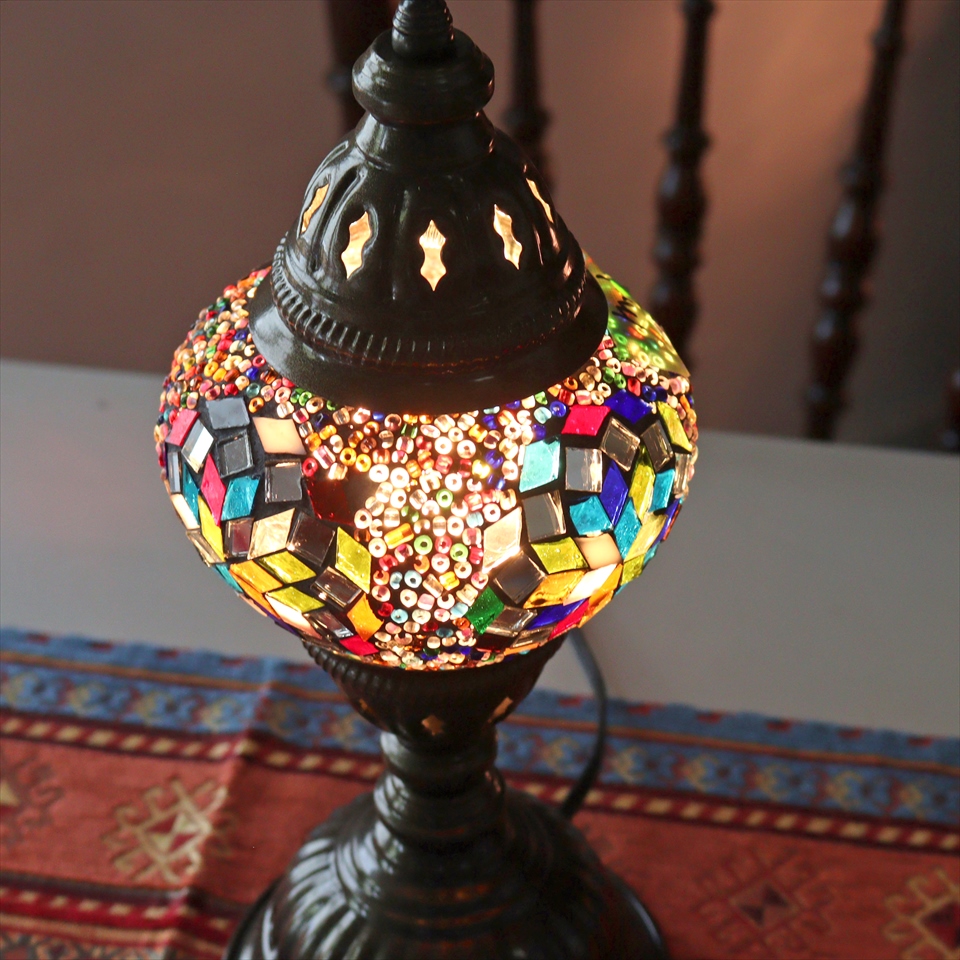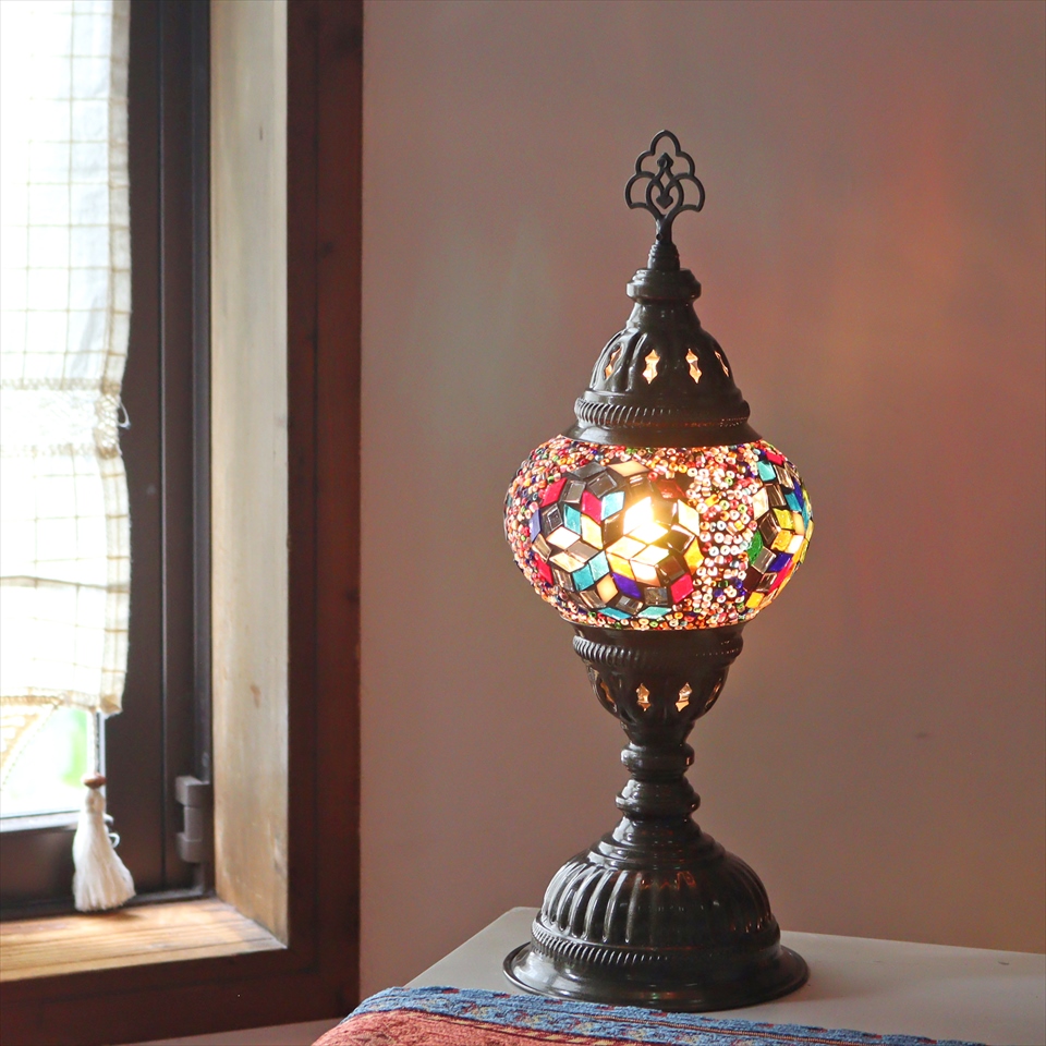 トルコランプ モザイクテーブルランプ 直径13cm 全高36cm ミックスカラー