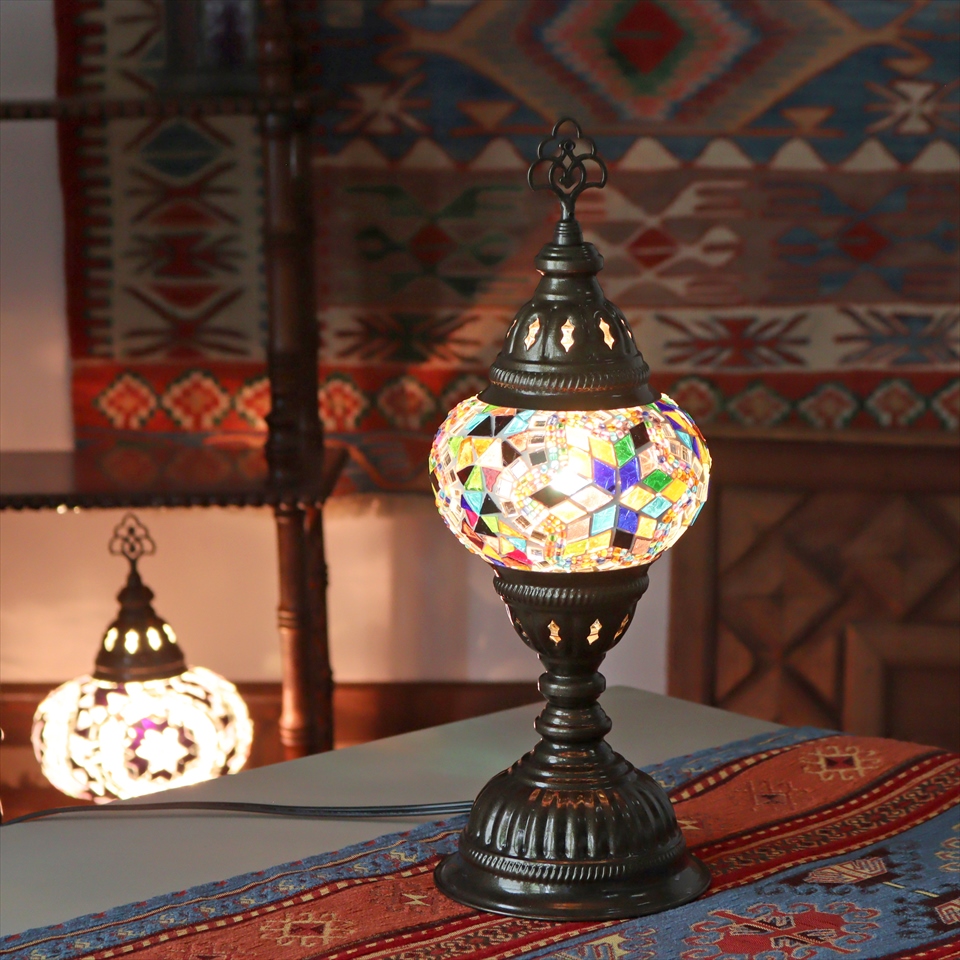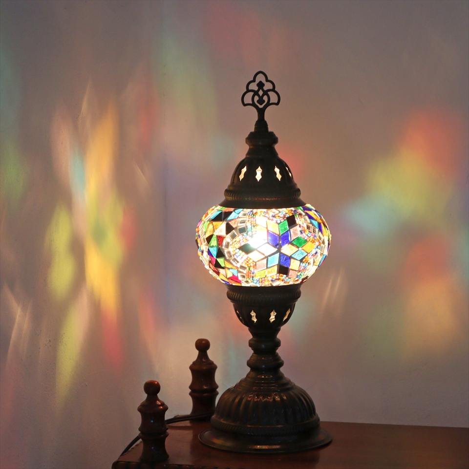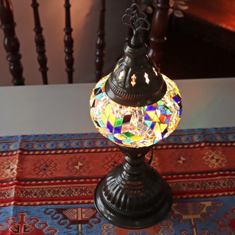 トルコランプ モザイクテーブルランプ 直径13cm 全高36cm ミックスカラー