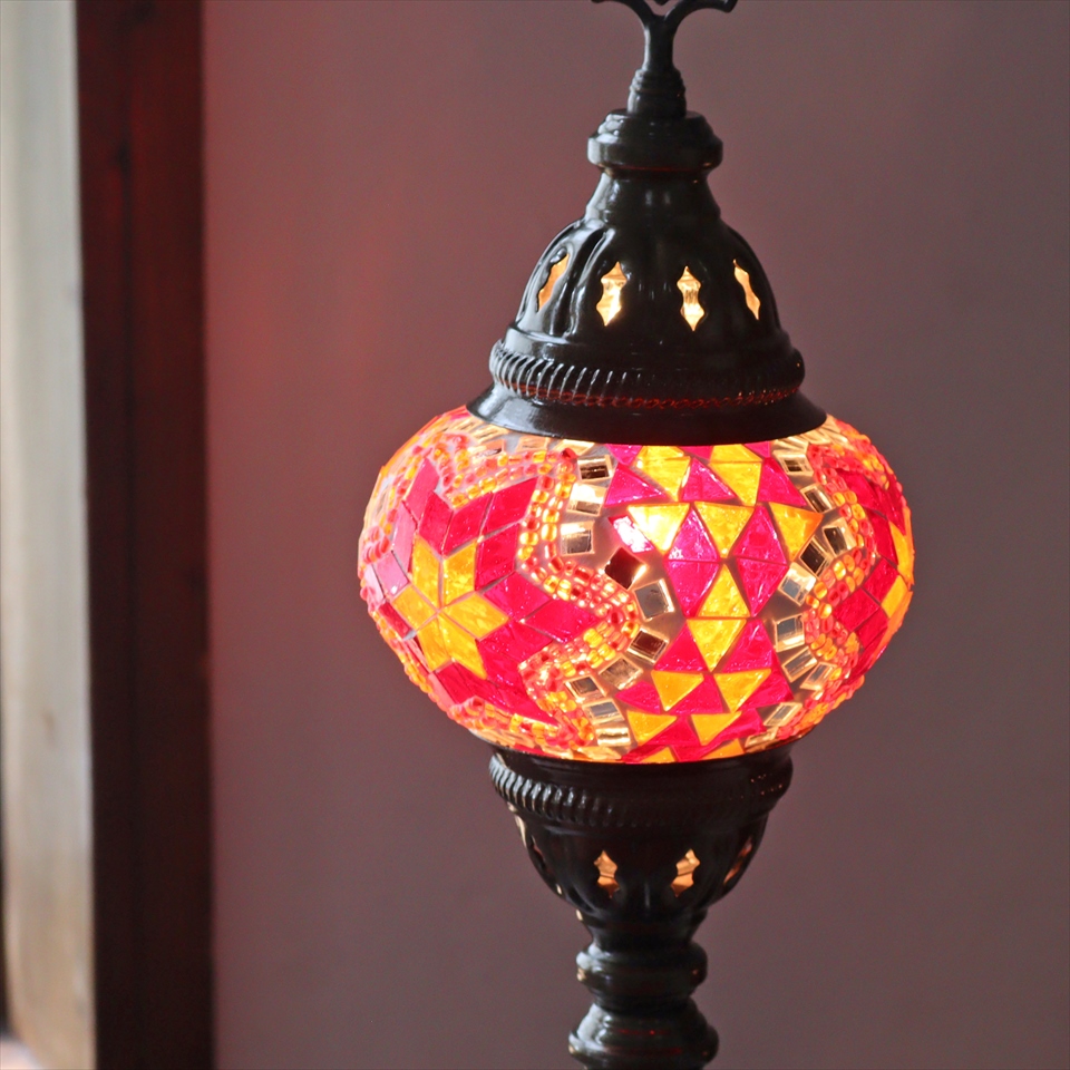 トルコランプ モザイクテーブルランプ 直径13cm 全高36cm オレンジ