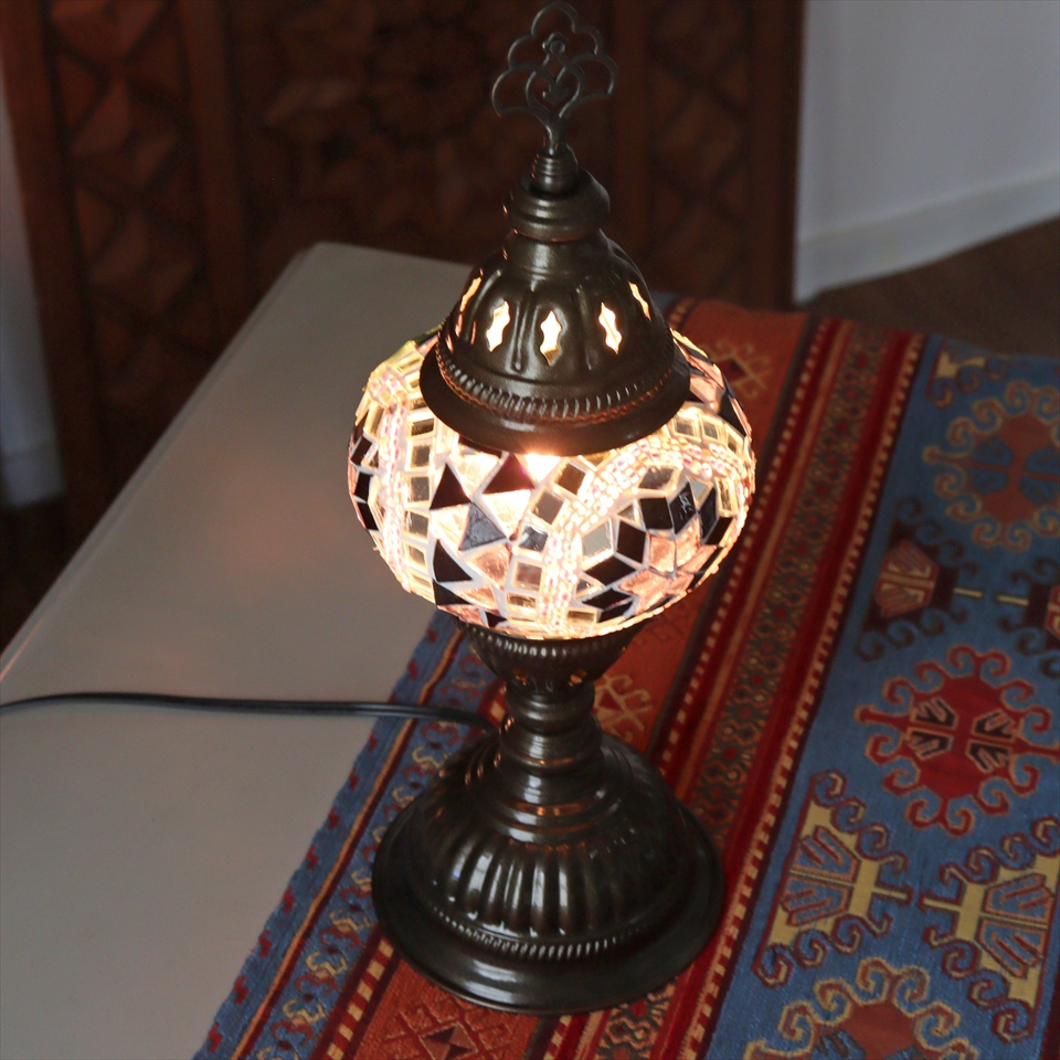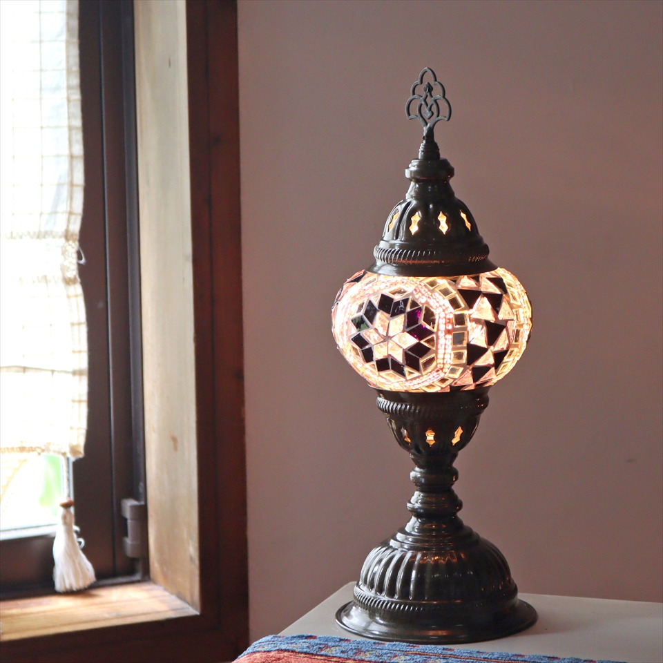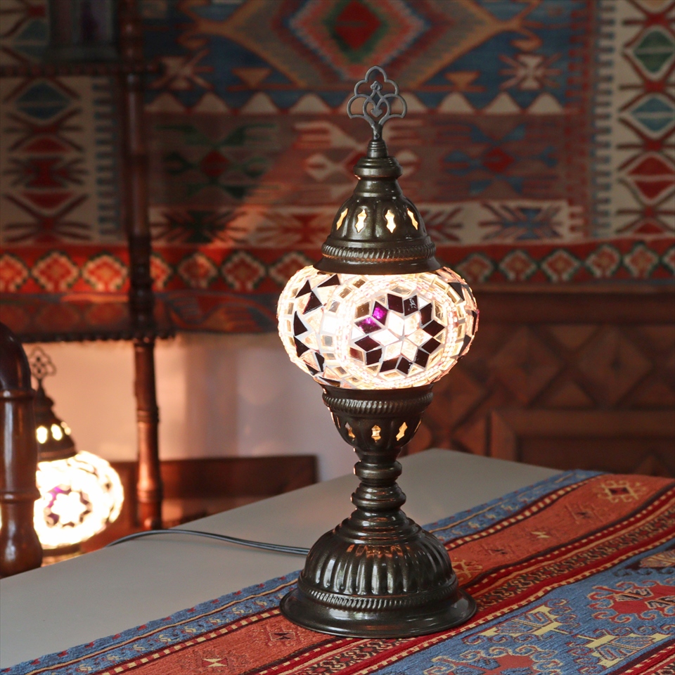トルコランプ モザイクテーブルランプ 直径13cm 全高36cm パープル