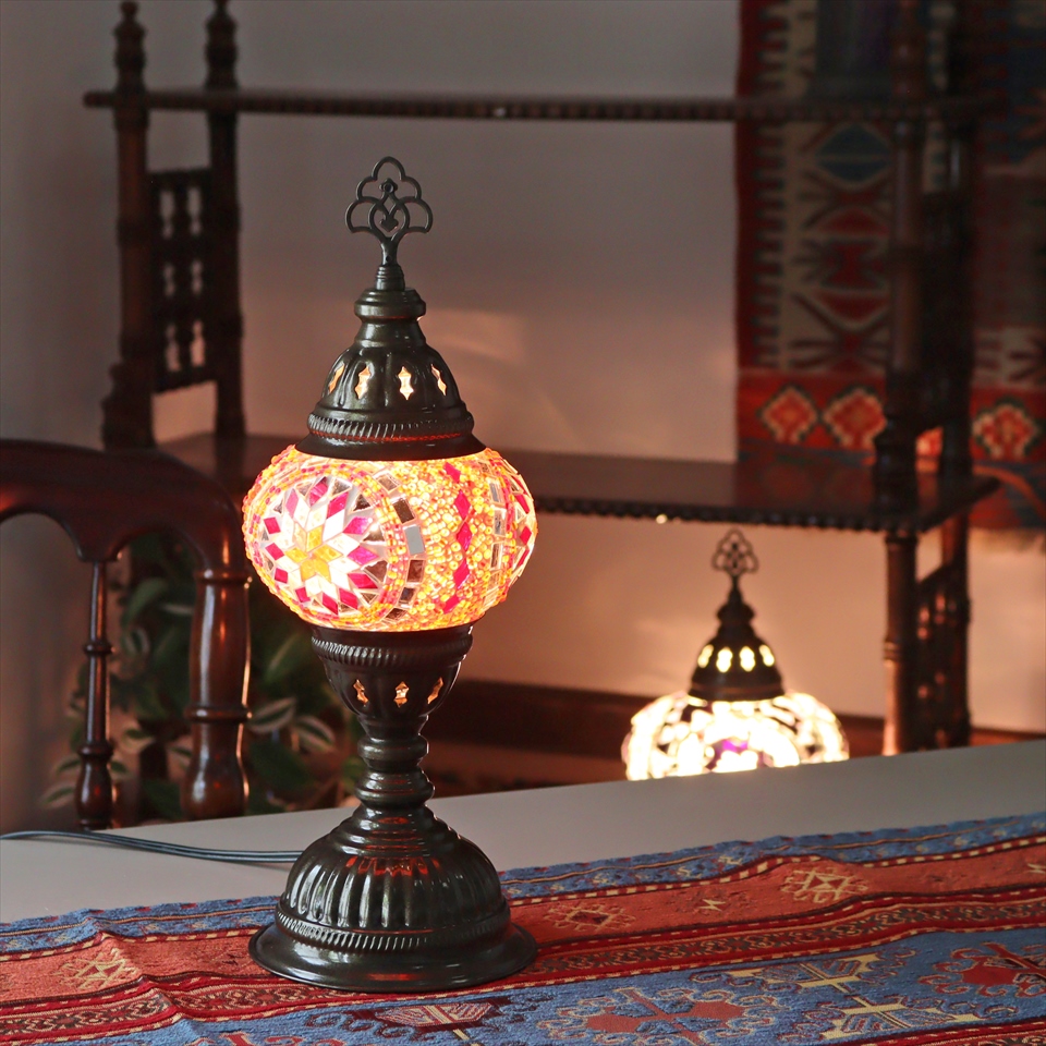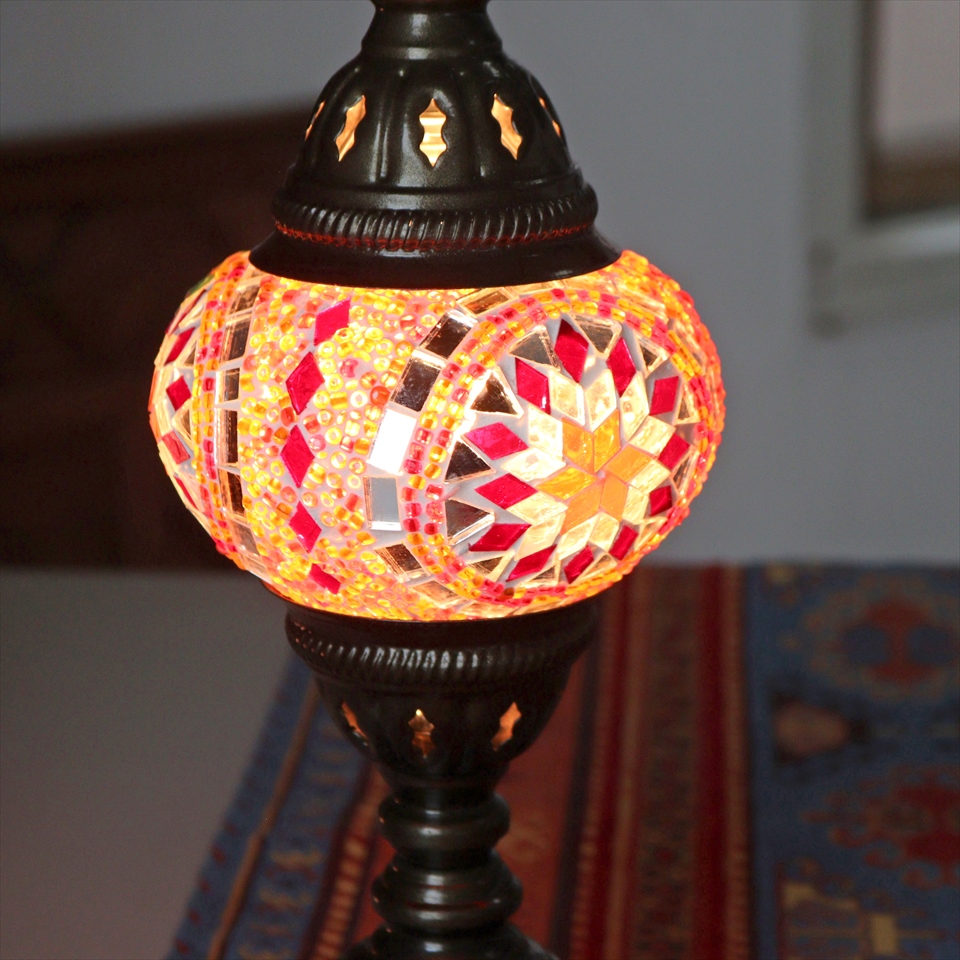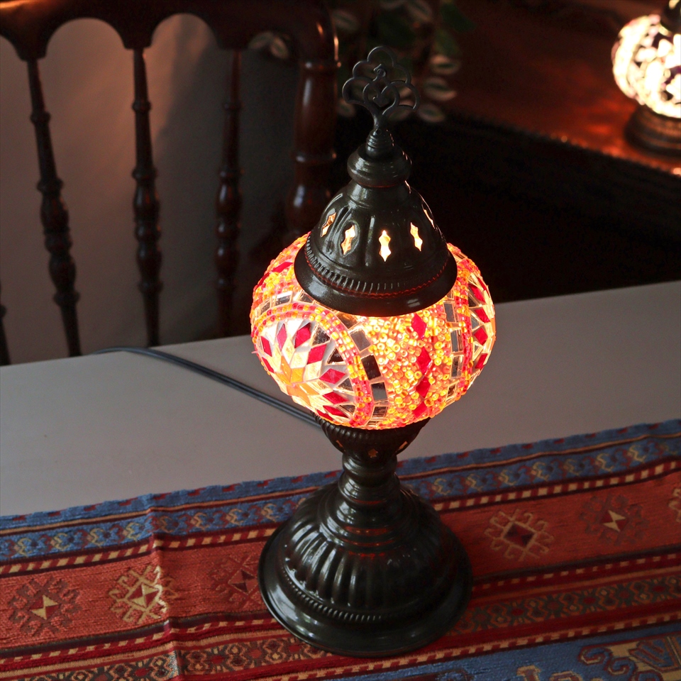 トルコランプ モザイクテーブルランプ 直径13cm 全高36cm オレンジ