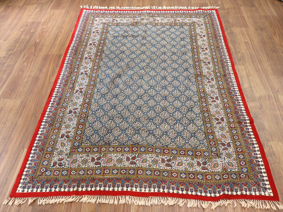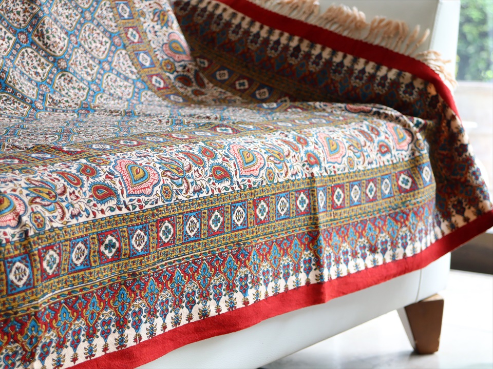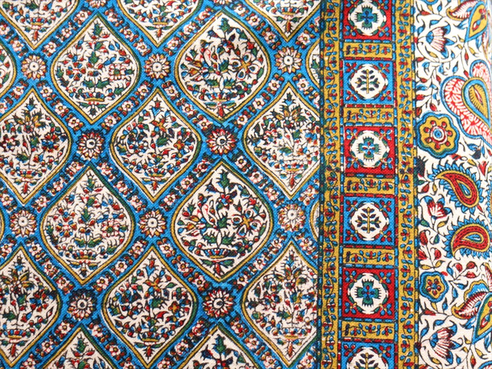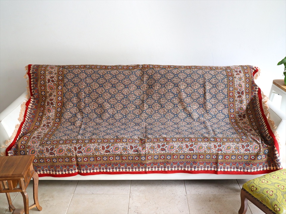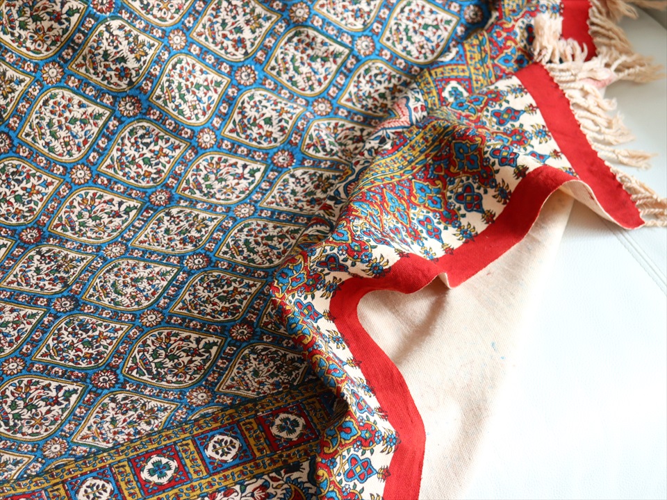 ペルシャ更紗 イラン手染め布 193x131cm アンティークデザイン トレリス テーブルクロス ソファカバー