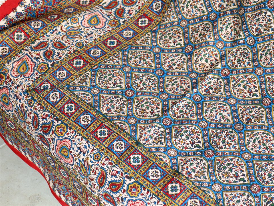 Key:コットン 染色 ブロックプリント 木版 捺染 伝統工芸 ペルシャブルー ペイズリー フリークロス マルチカバー ベッドスプレッド ベッドカバー ソファカバー カーテン タペストリー ファブリック インテリアファブリック クラフト インテリア ペルシャ ペルセポリス イラン 中東 シルクロード アジアン エスニック 200cmサイズ