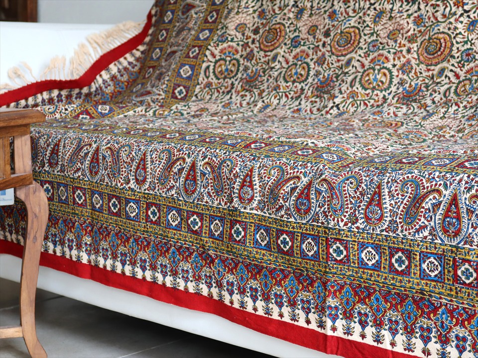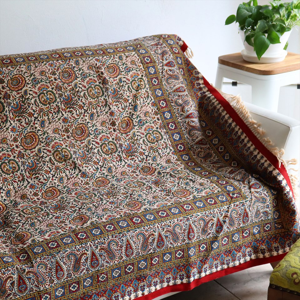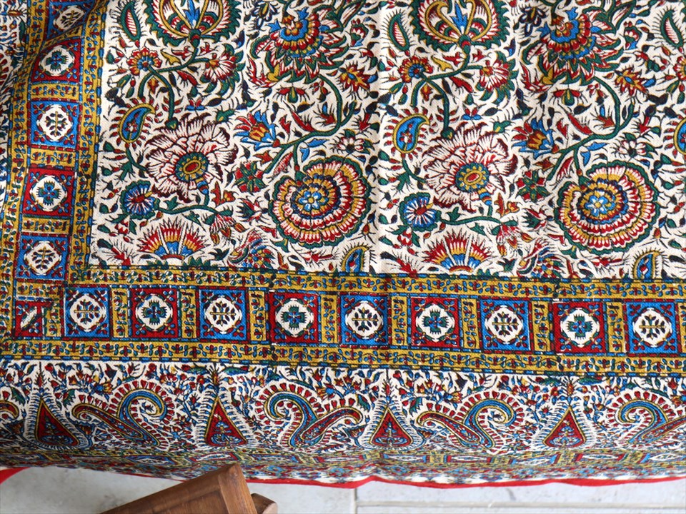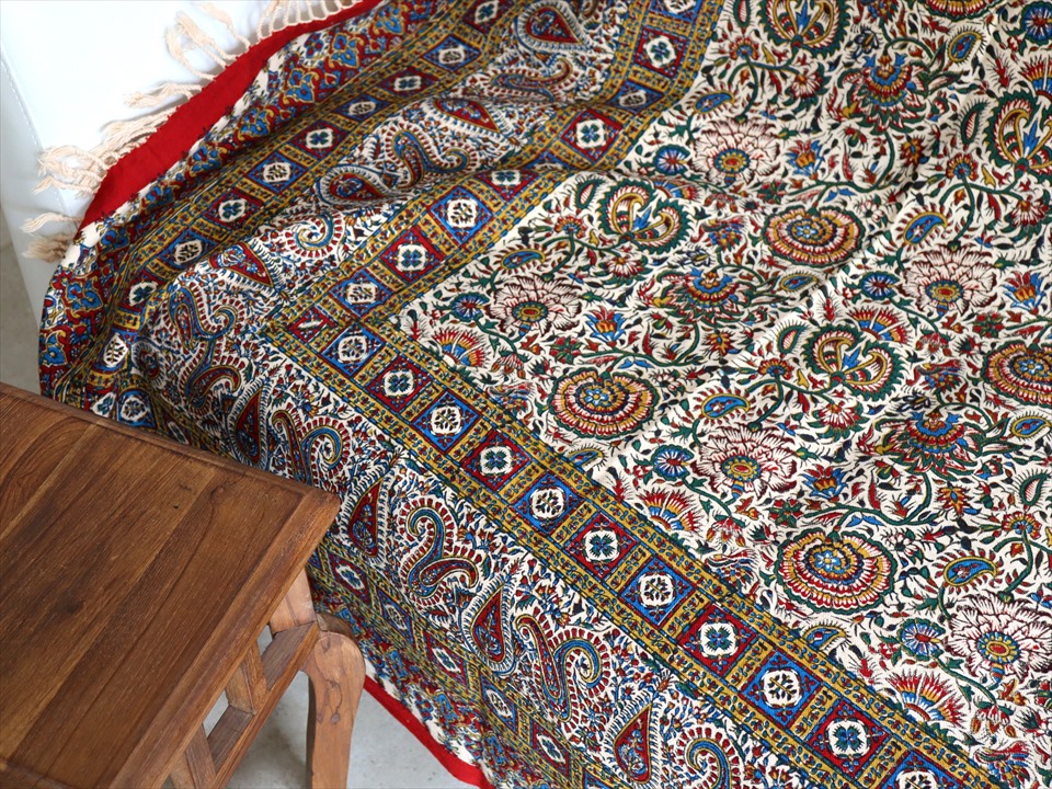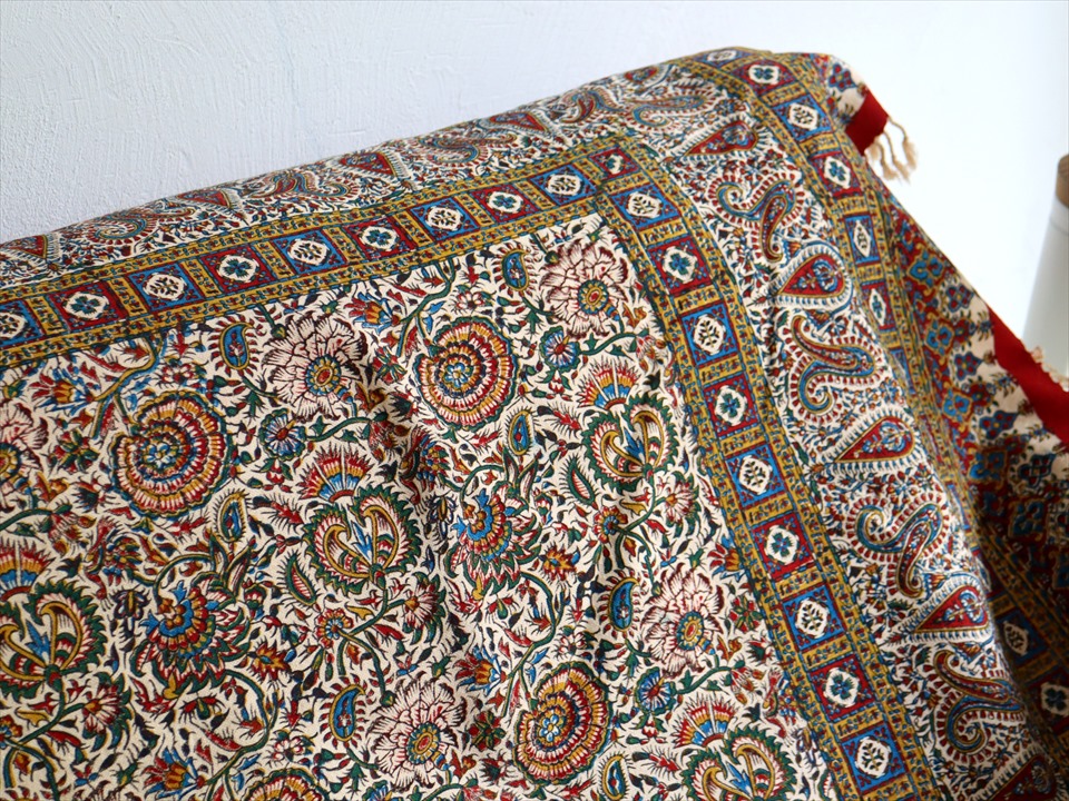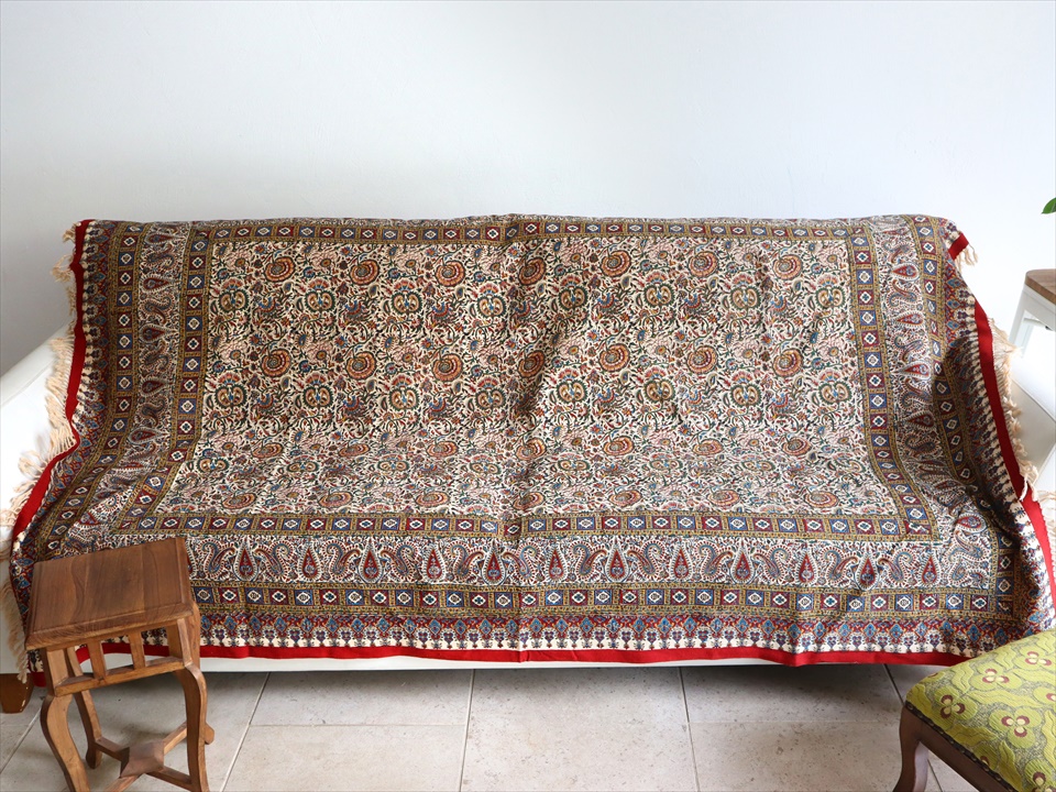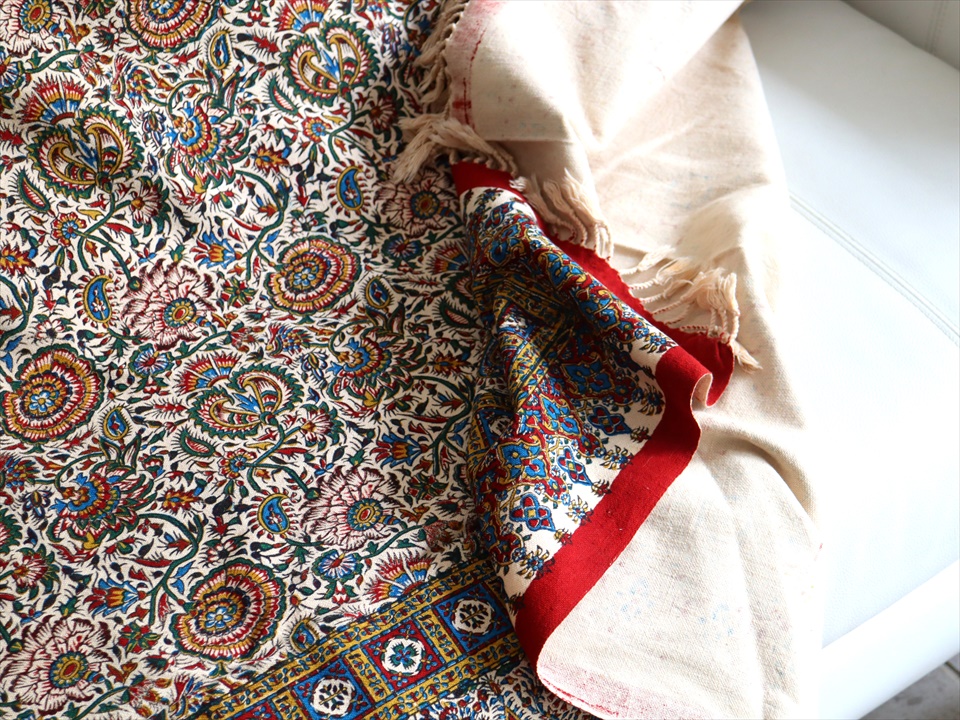 ペルシャ更紗 イラン手染め布 192x131cm アンティークデザイン テーブルクロス ソファカバー