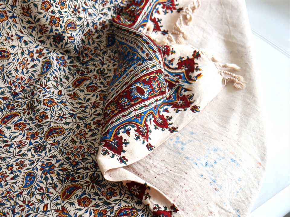 Key:コットン 染色 ブロックプリント 木版 捺染 伝統工芸 ペルシャブルー ペイズリー フリークロス マルチカバー ベッドスプレッド ベッドカバー ソファカバー カーテン タペストリー ファブリック インテリアファブリック クラフト インテリア ペルシャ ペルセポリス イラン 中東 シルクロード アジアン エスニック 200cmサイズ