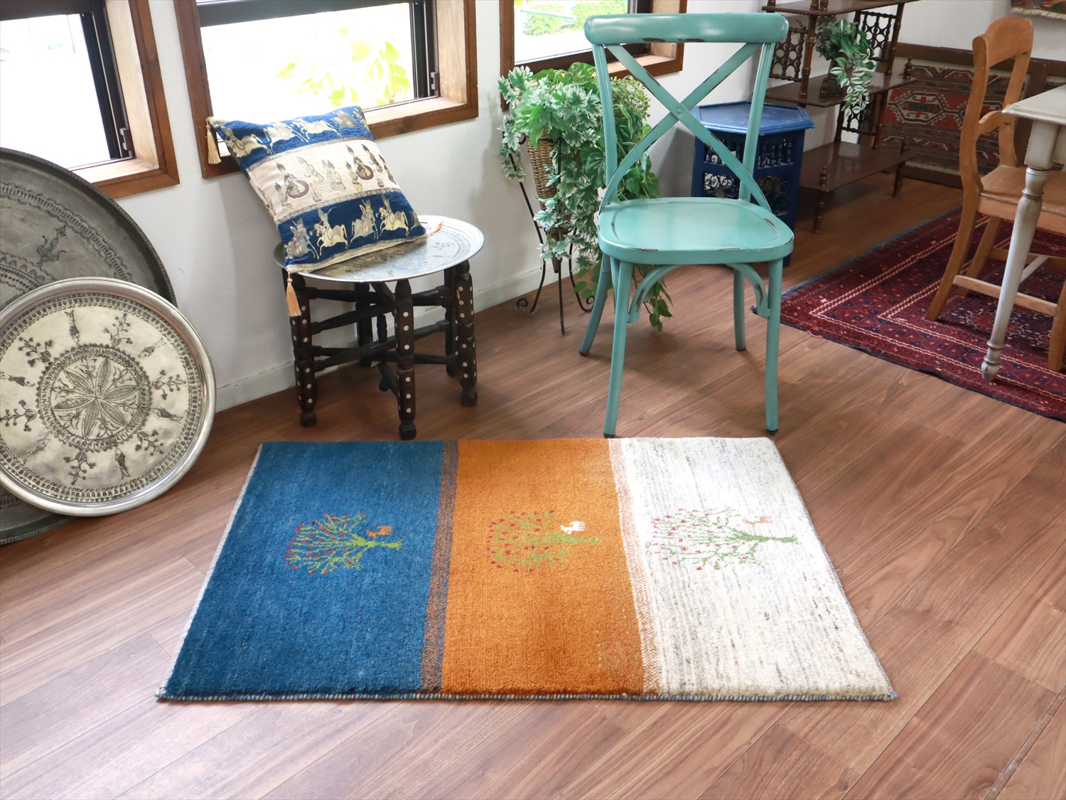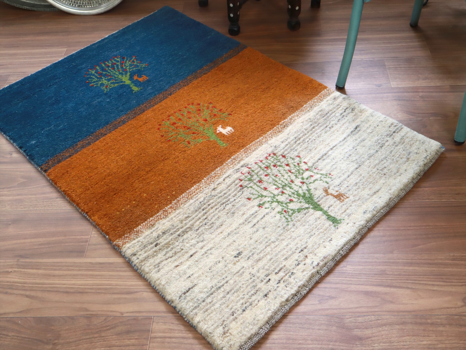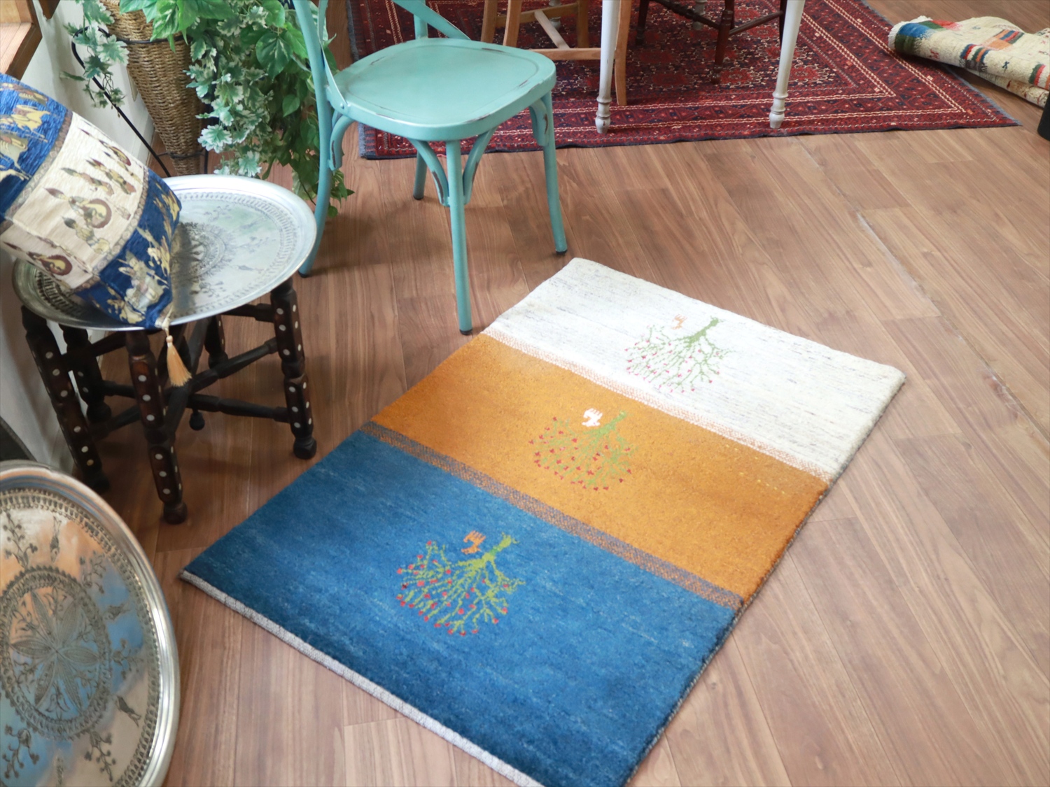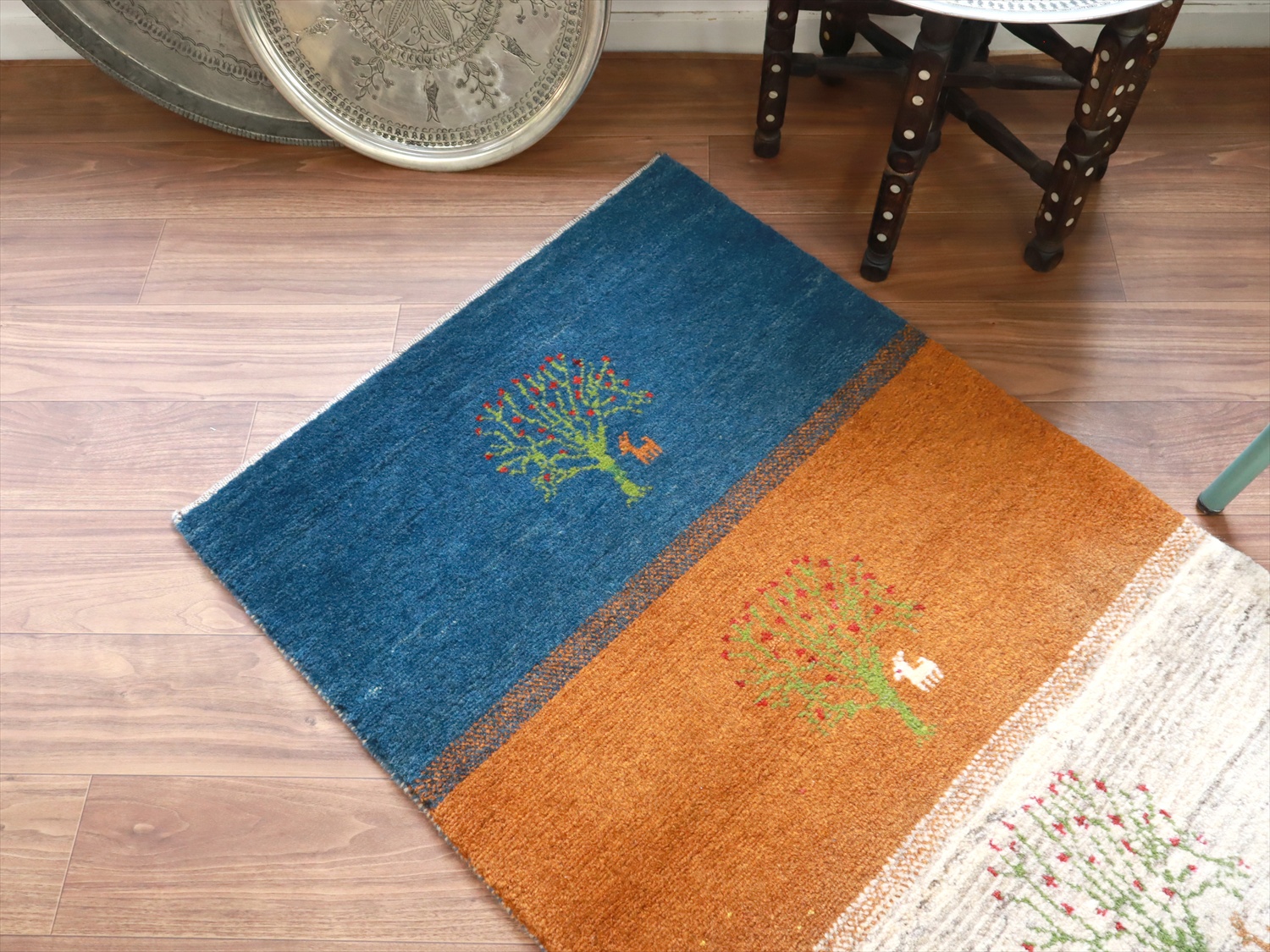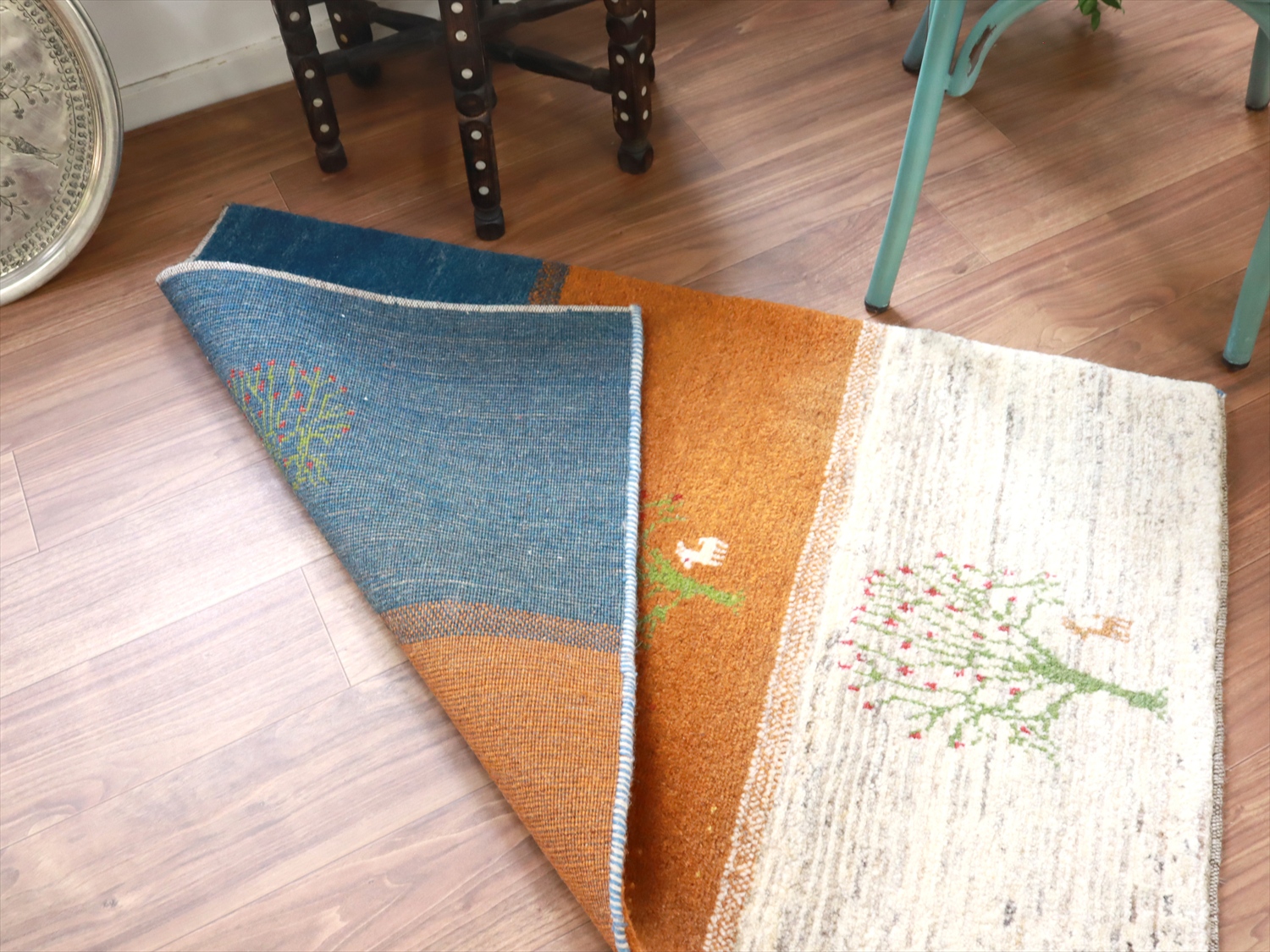 毛足が長く、パイルを含めたギャッベ全体の厚みは2.2-2.3cm程度。ボリューム感たっぷりのふかふかギャッベです。