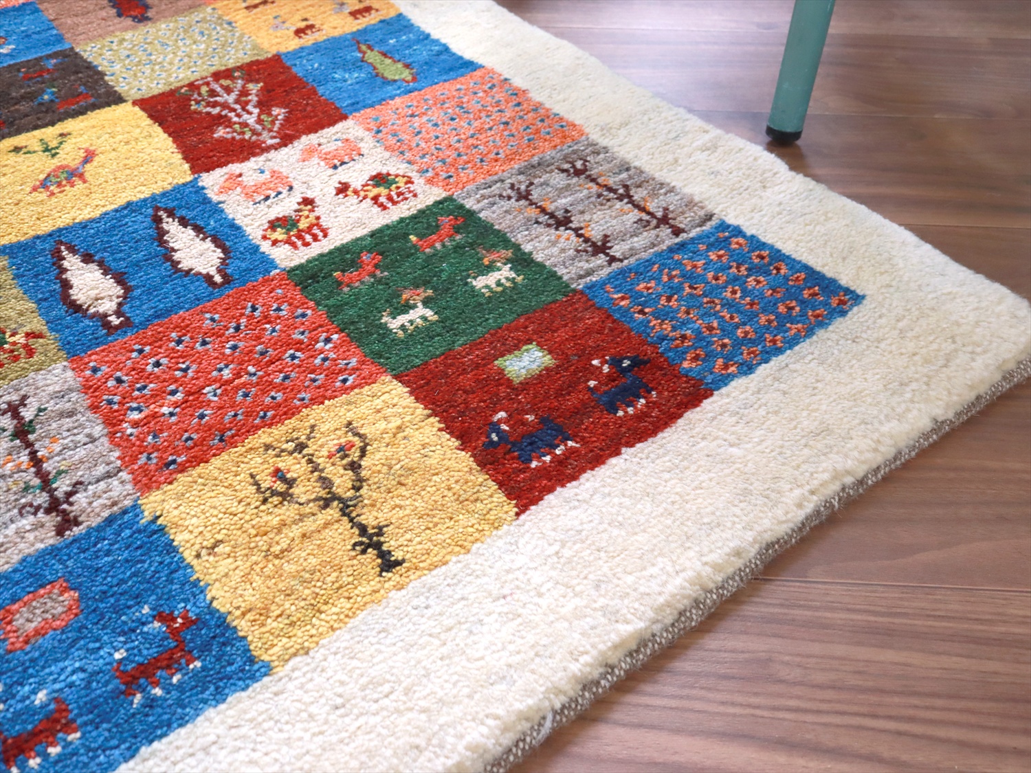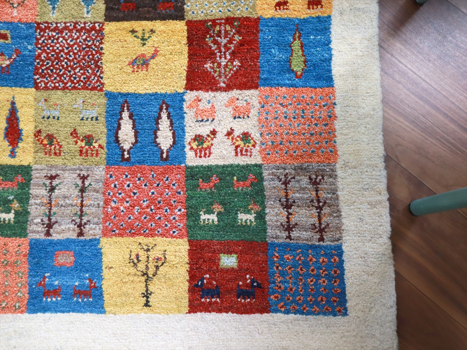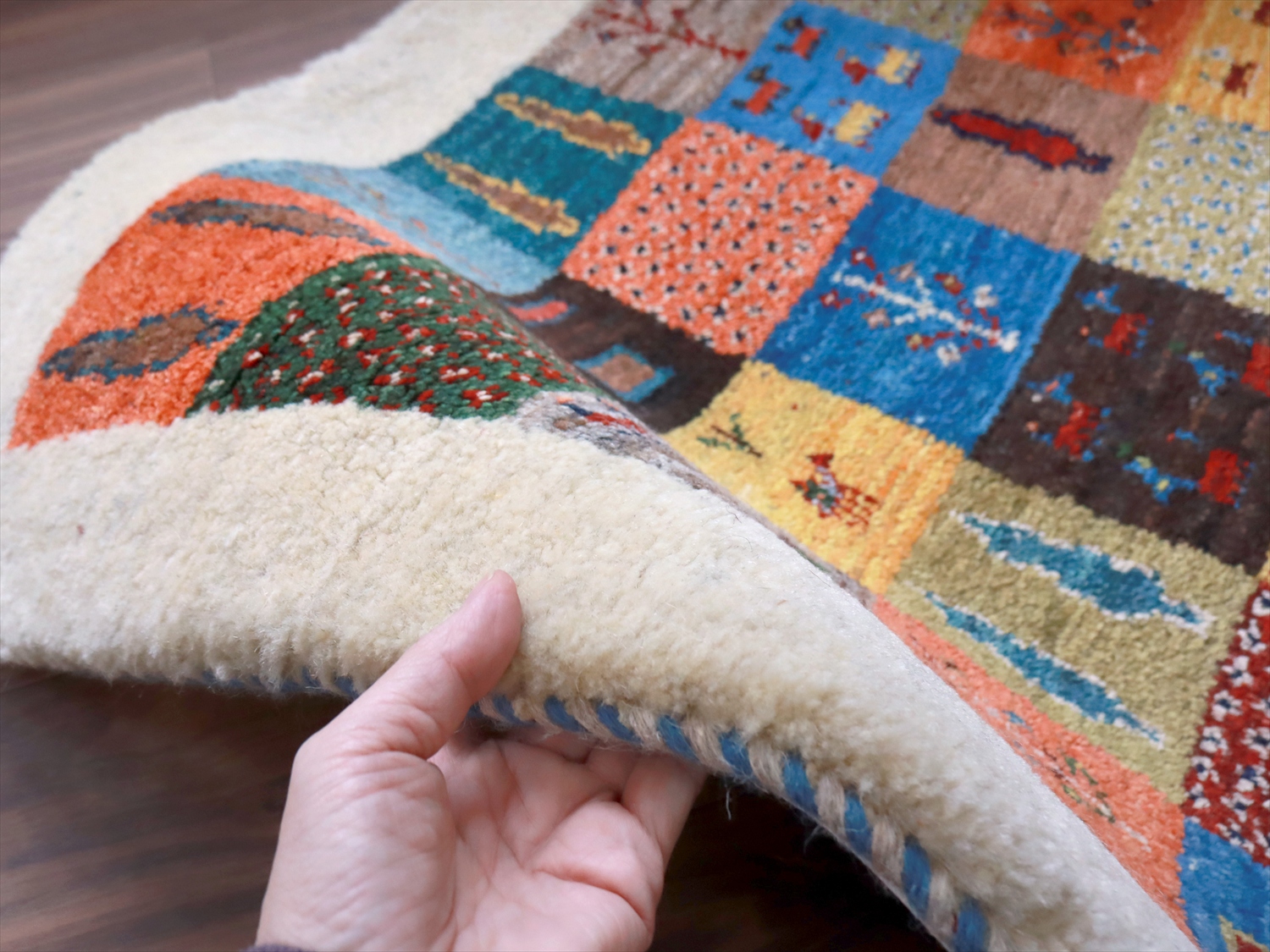 毛足が長く、パイルを含めたギャッベ全体の厚みは2.2-2.3cm程度。ボリューム感たっぷりのふかふかギャッベです。