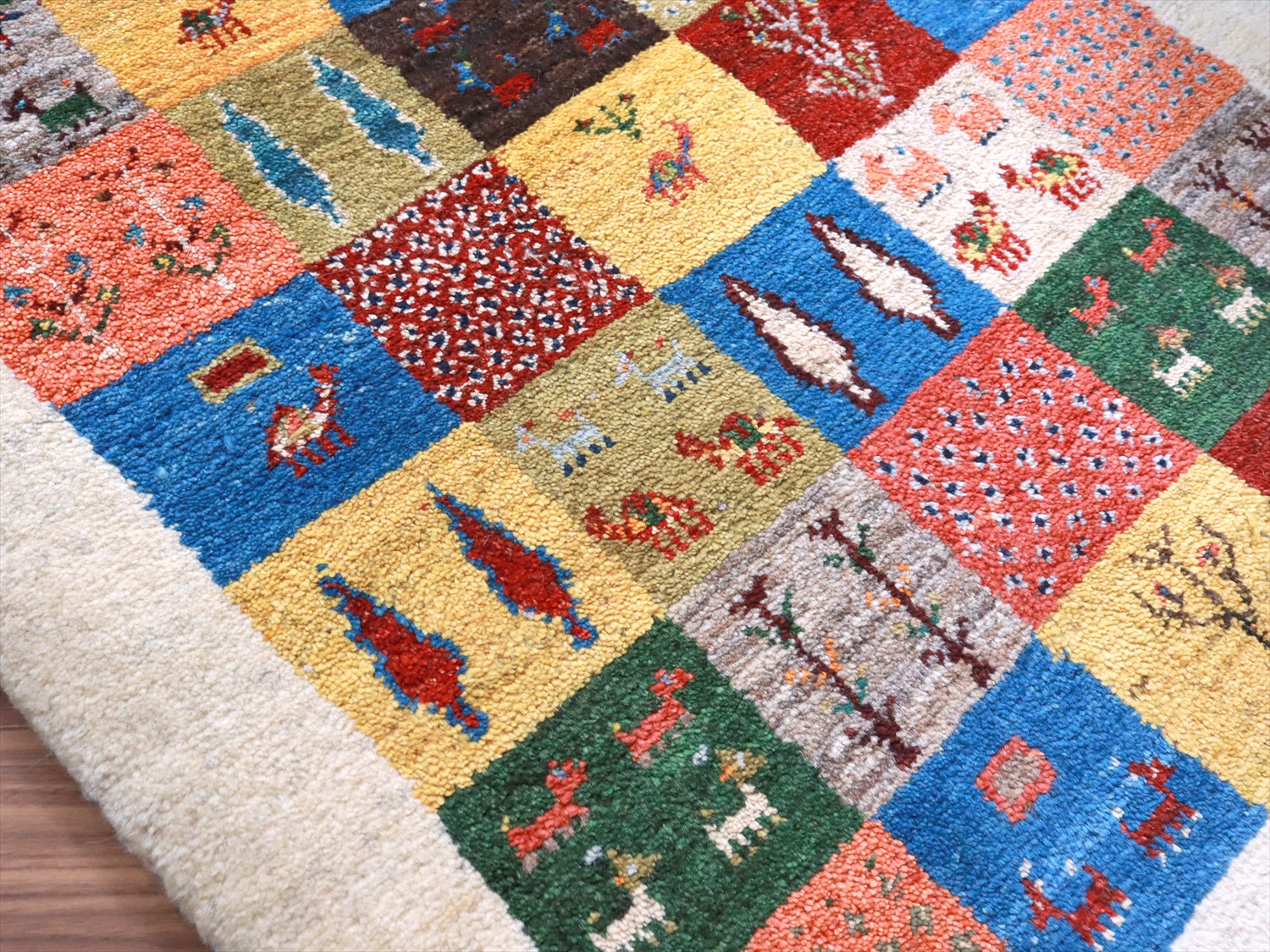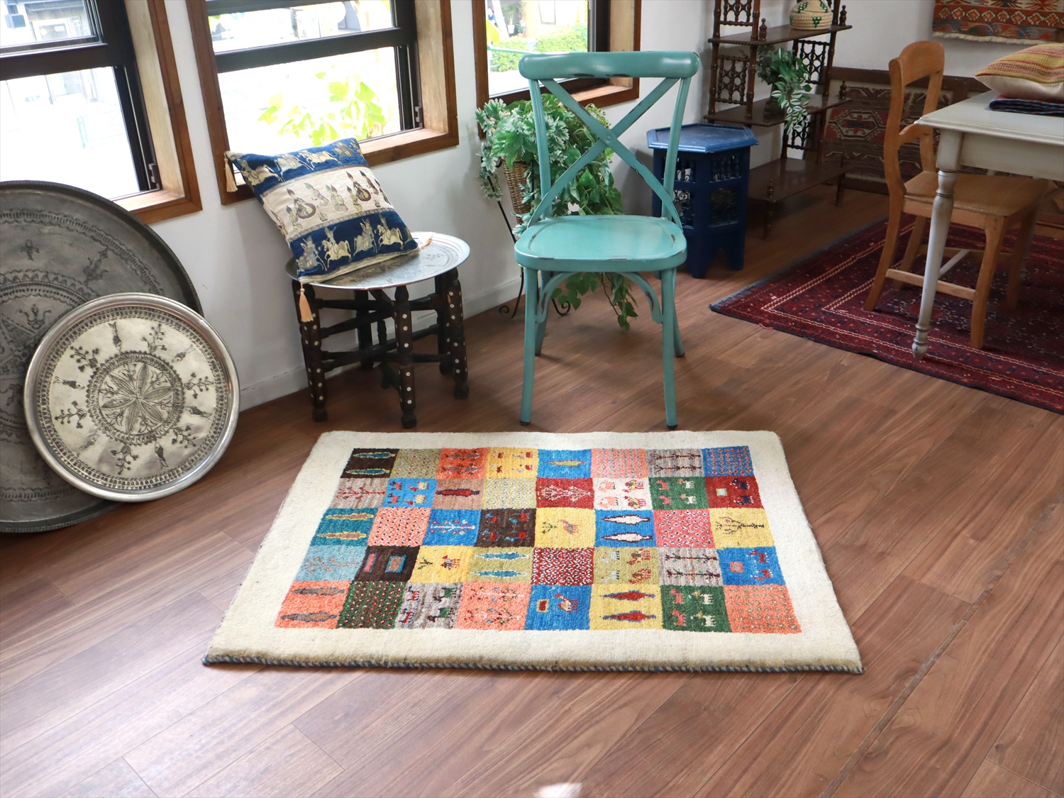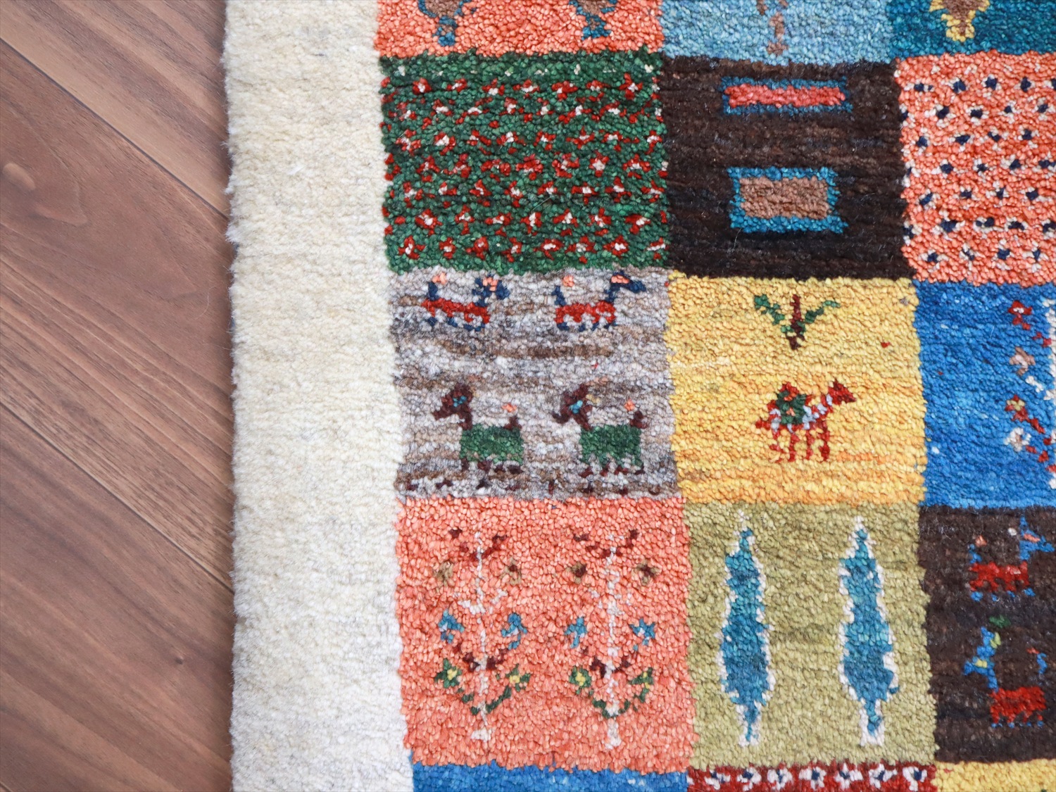毛足が長く、パイルを含めたギャッベ全体の厚みは2.2-2.3cm程度。ボリューム感たっぷりのふかふかギャッベです。