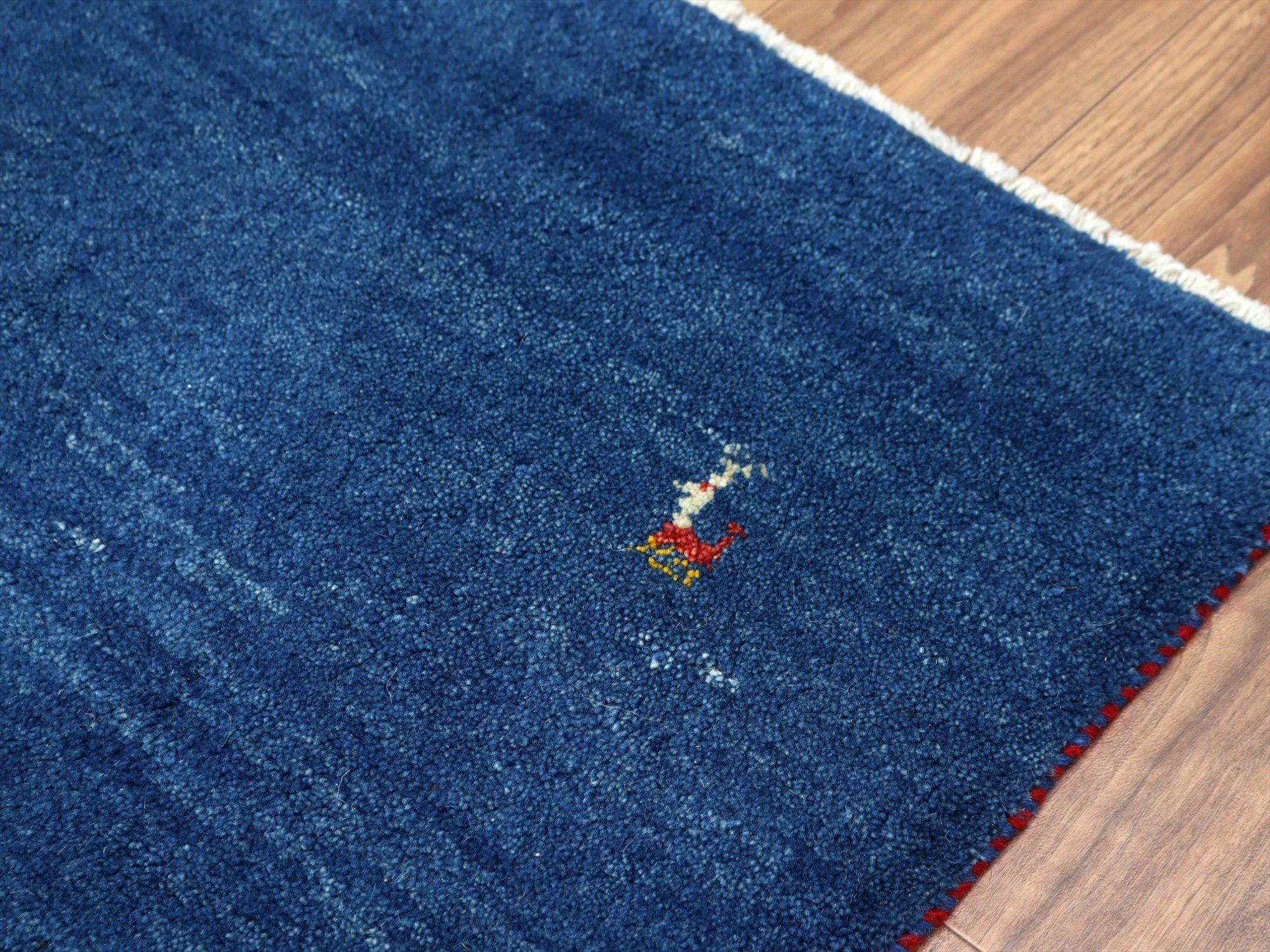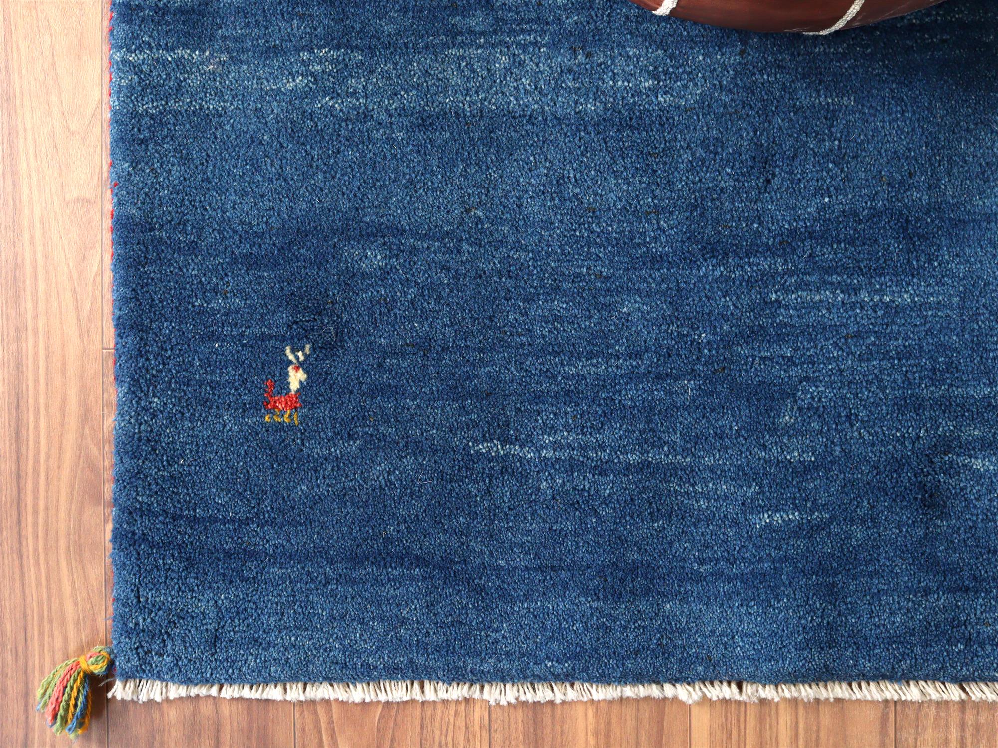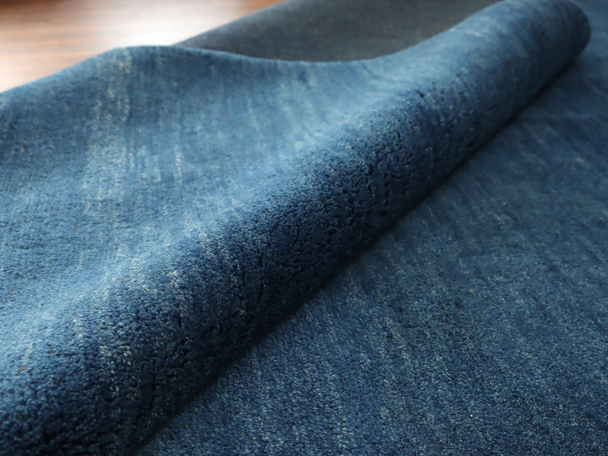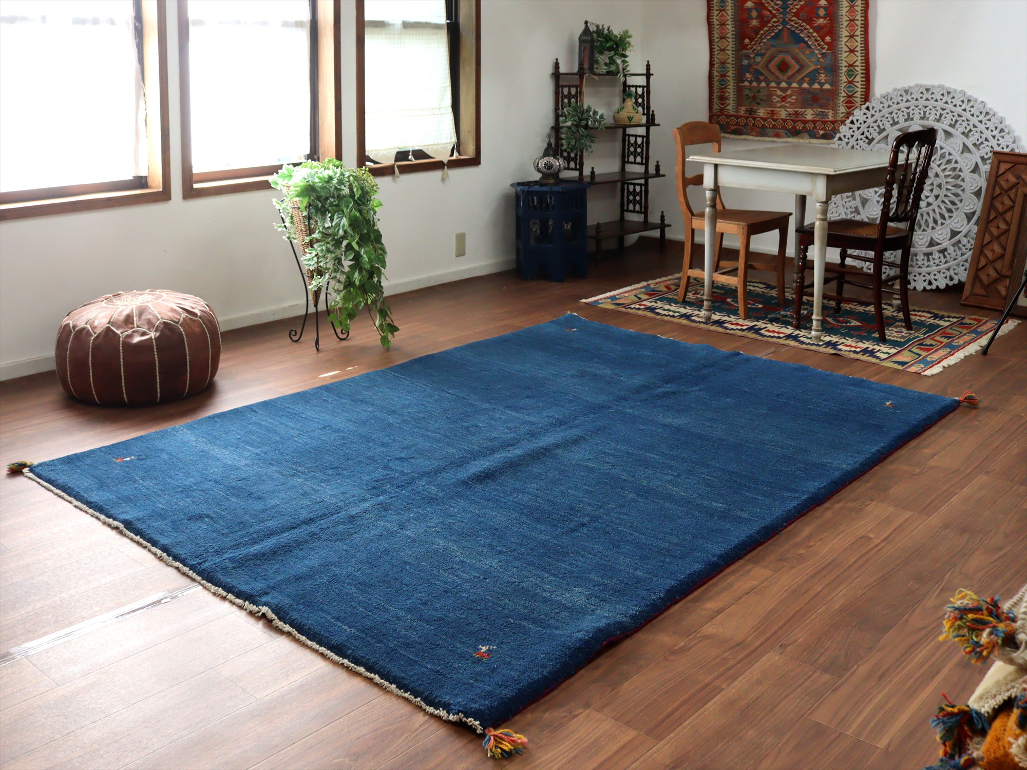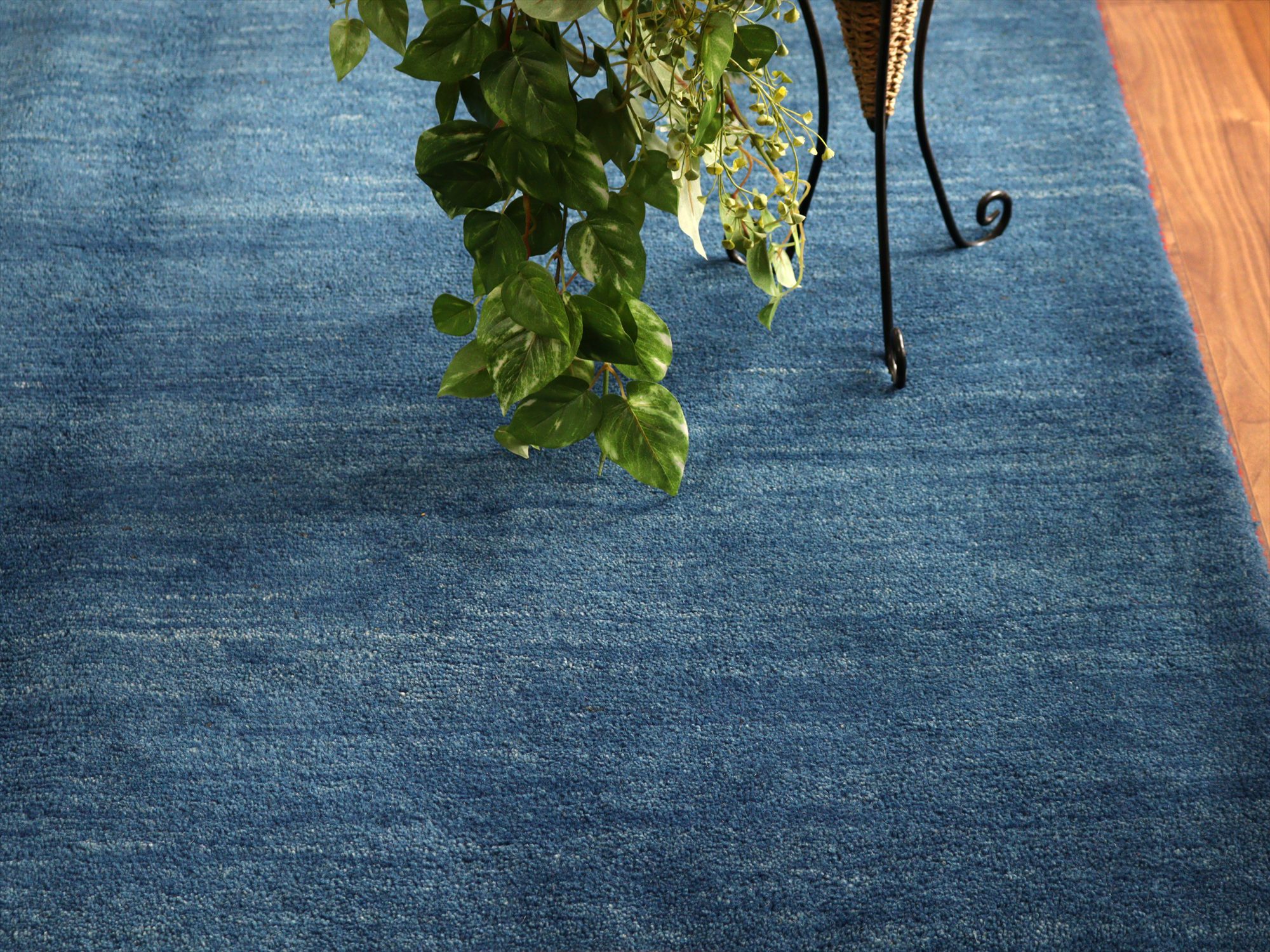 ブルーのグラデーションギャッベ。シンプルなデザインだからこそ、きれいな濃淡がよりいっそう引き立ちます。