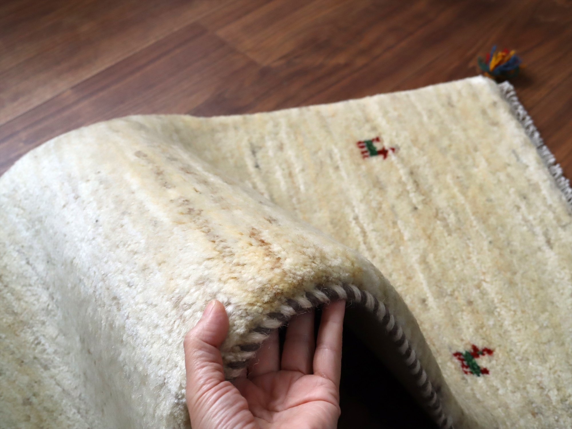 ギャッベ イラン 手織り 細長ランナー 150x50cm ナチュラルアイボリー 羊毛 シンプル 無地