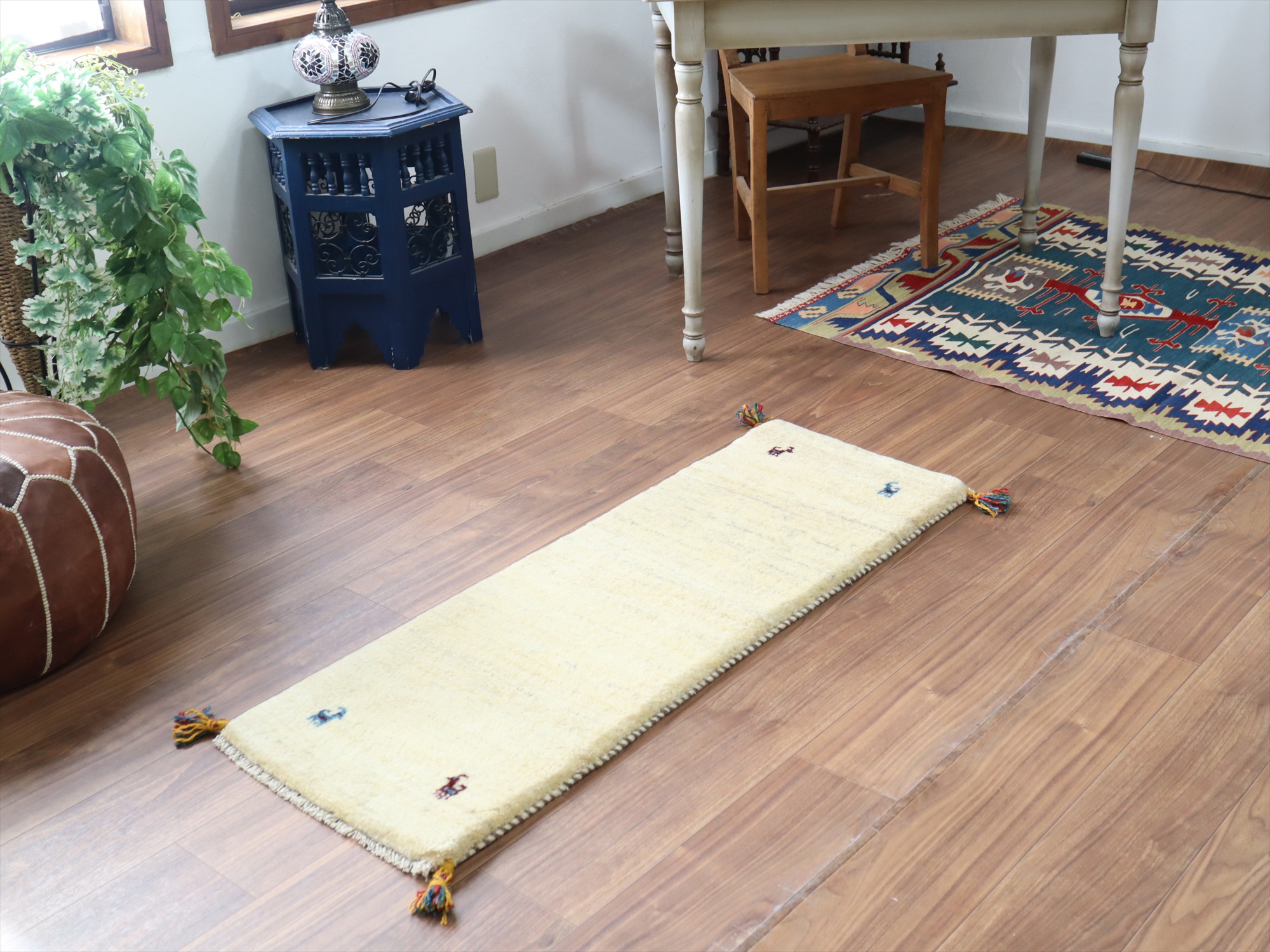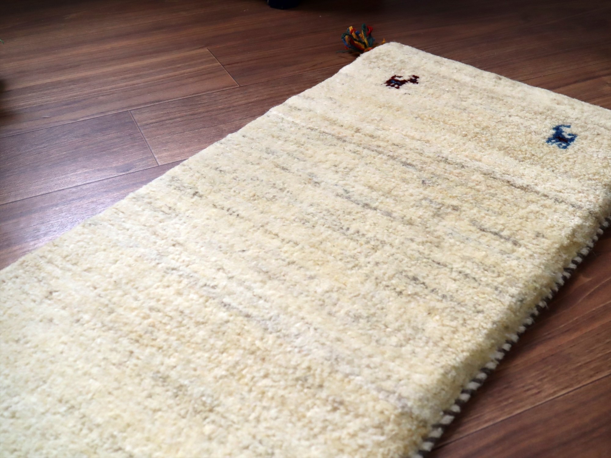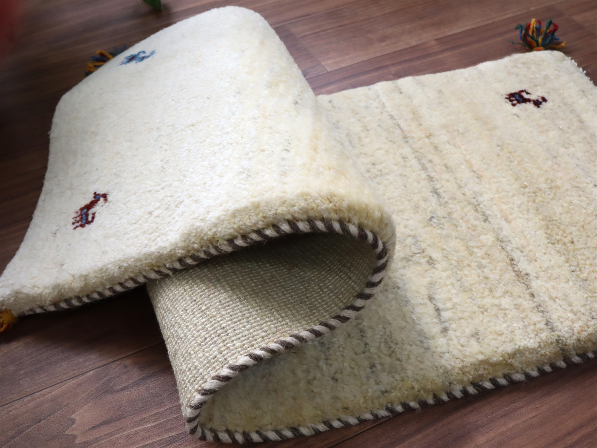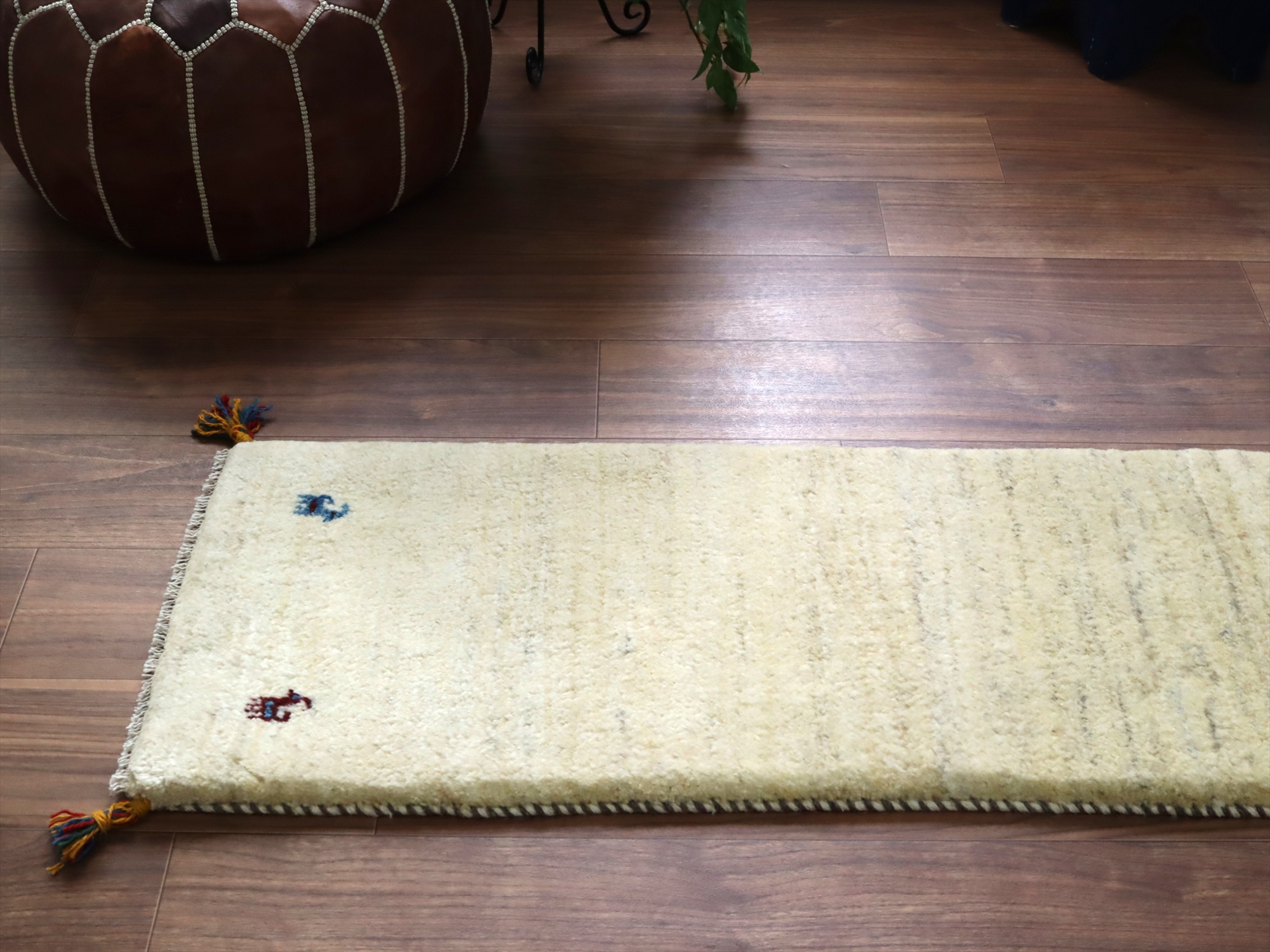 ギャッベ イラン 手織り ミニランナー 117x40cm ナチュラルアイボリー 羊毛 シンプル 無地