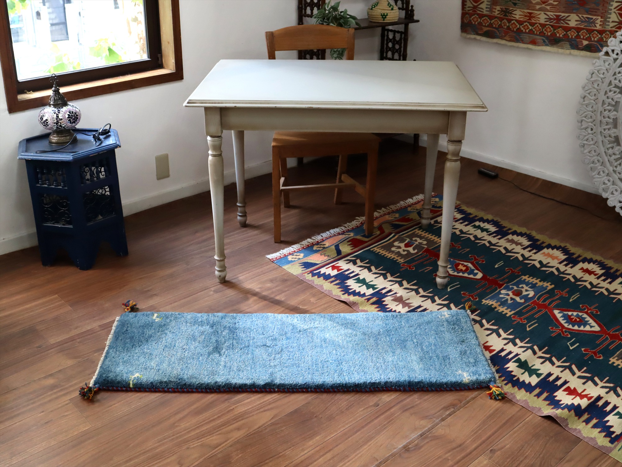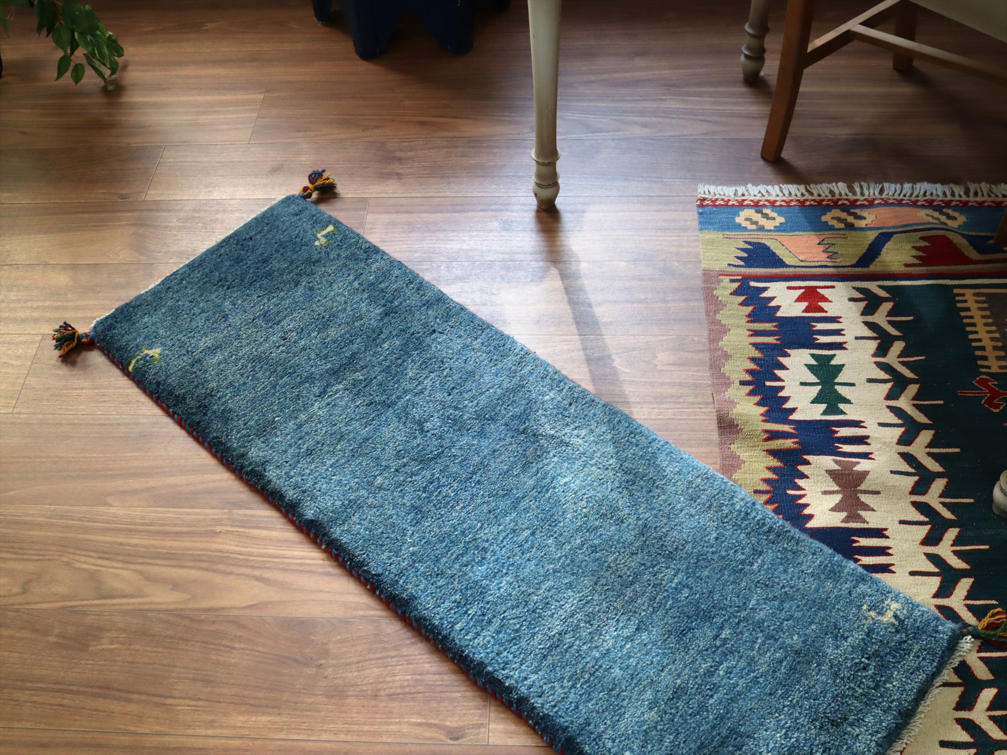 毛足の長いギャッベの中でも、かなりボリューム感のある分厚い織りです。パイル(毛足)と下地を合わせた厚みは2.4-2.5cmほど。