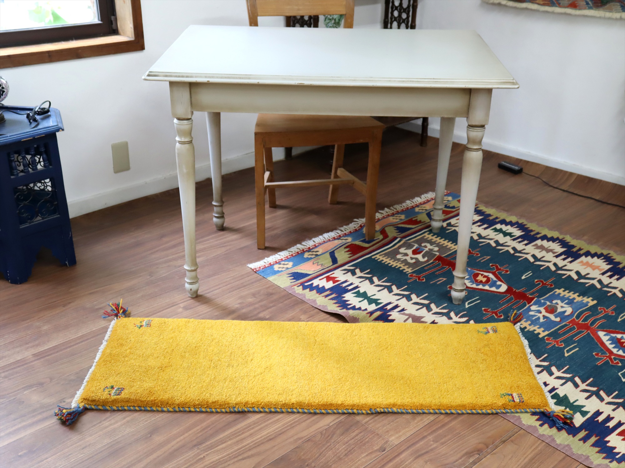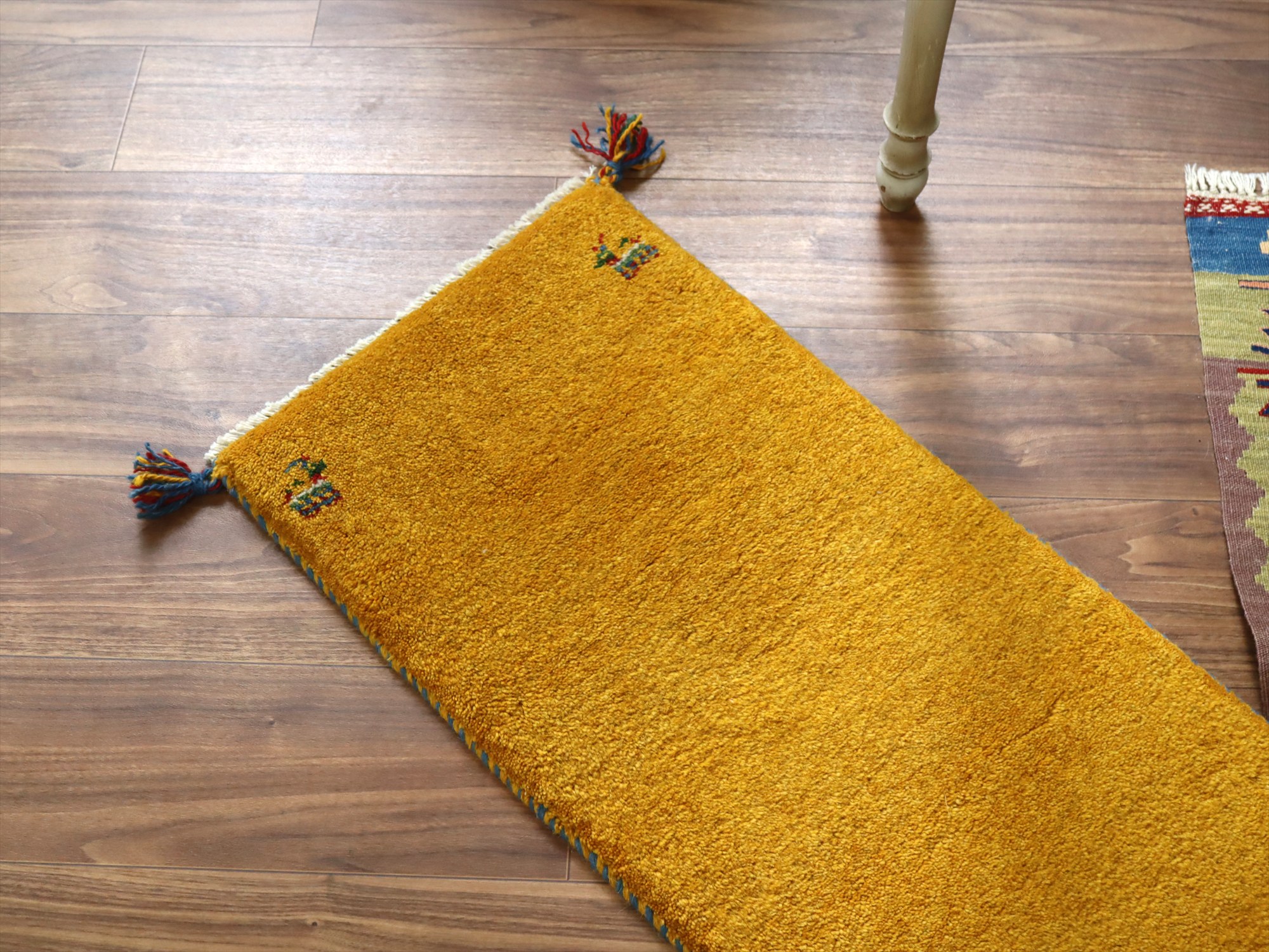 ギャッベ イラン 手織り ミニランナー 117x42cm イエロー シンプル 無地
