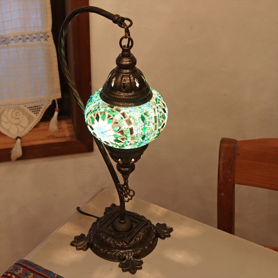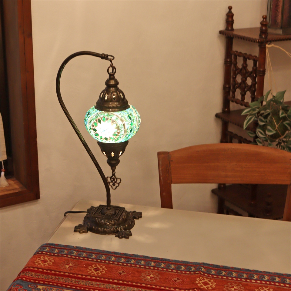 トルコランプ モザイクテーブルランプ ハンギング 全高42cm 横幅23cm ブルーグリーン