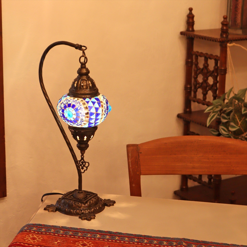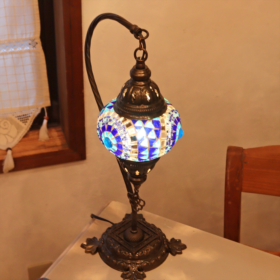 トルコランプ モザイクテーブルランプ ハンギング 全高42cm 横幅23cm ブルー
