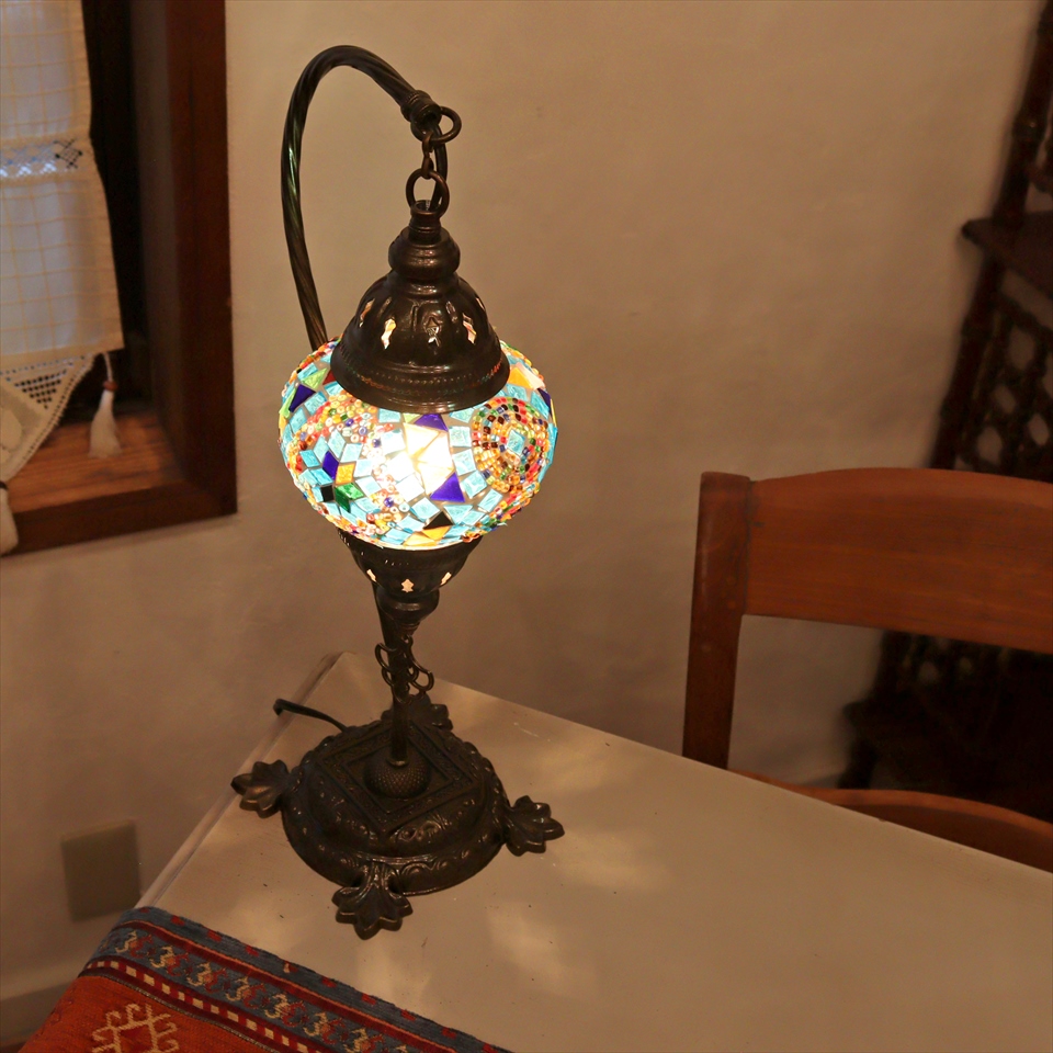 トルコランプ モザイクテーブルランプ ハンギング 全高42cm 横幅23cm ブルー