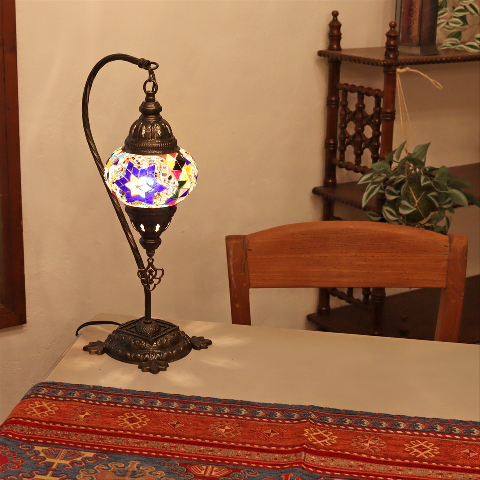 トルコランプ モザイクテーブルランプ ハンギング 全高42cm 横幅23cm ミックスカラー