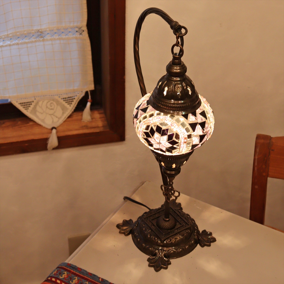 トルコランプ モザイクテーブルランプ ハンギング 全高42cm 横幅23cm パープル