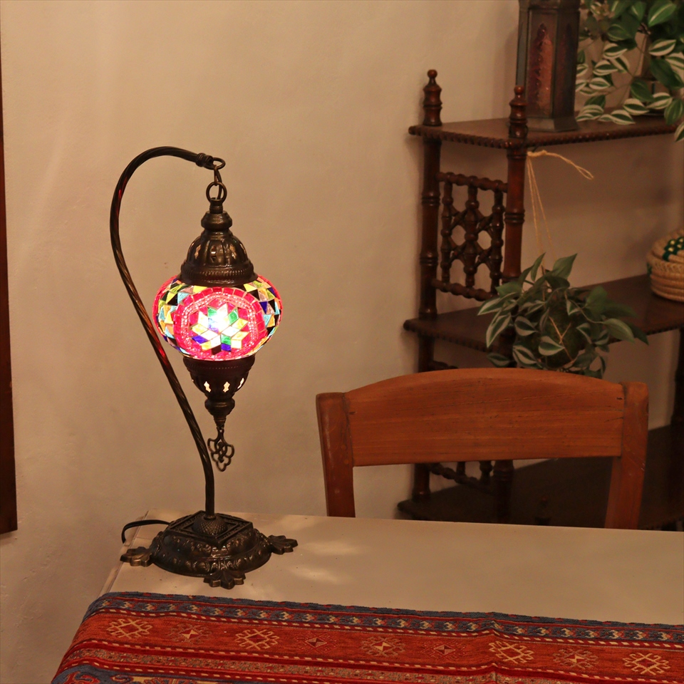 トルコランプ モザイクテーブルランプ ハンギング 全高42cm 横幅23cm レッド