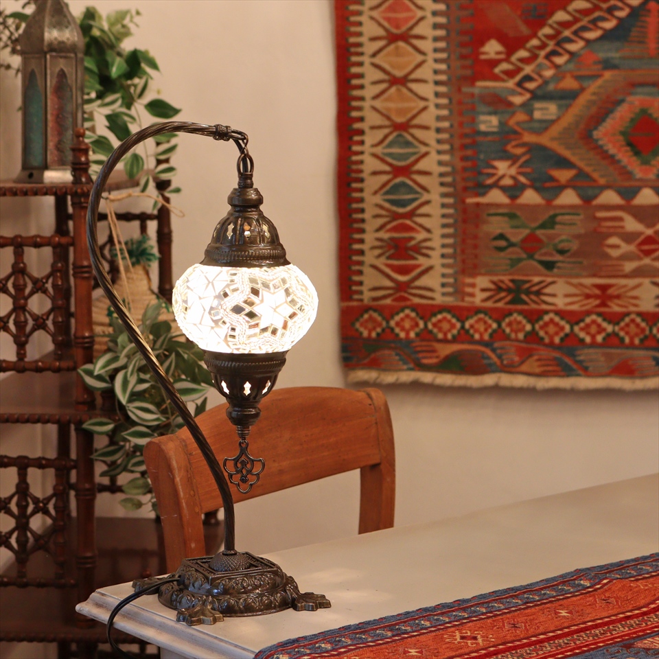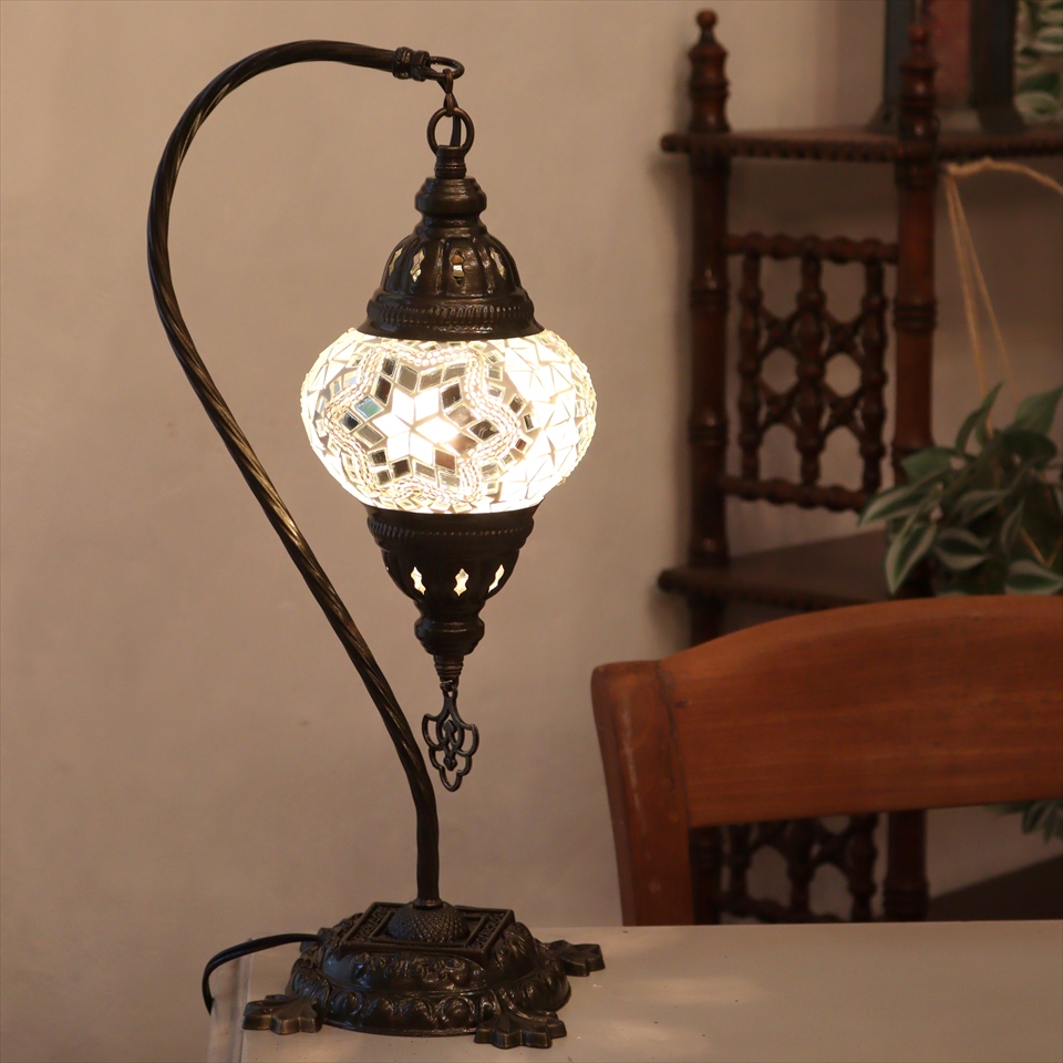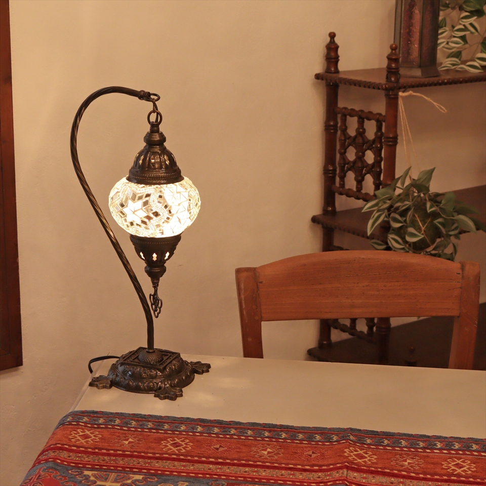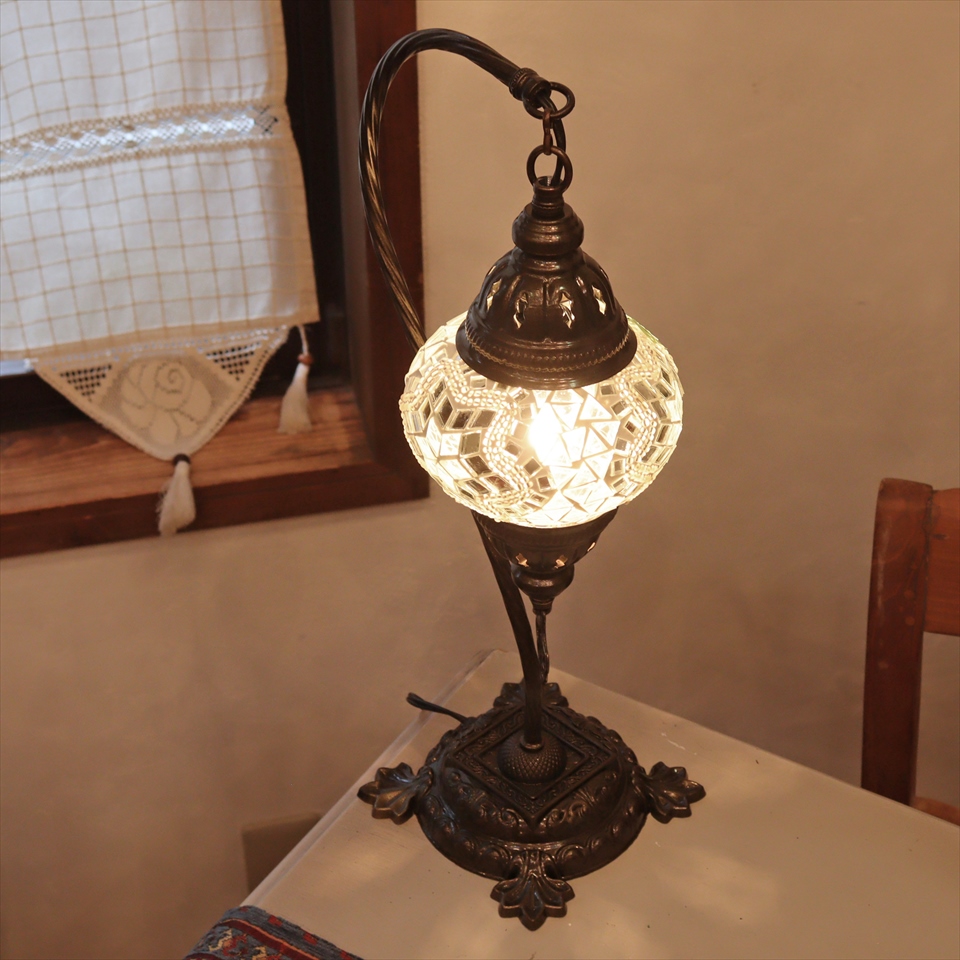 トルコランプ モザイクテーブルランプ ハンギング 全高42cm 横幅23cm ホワイト