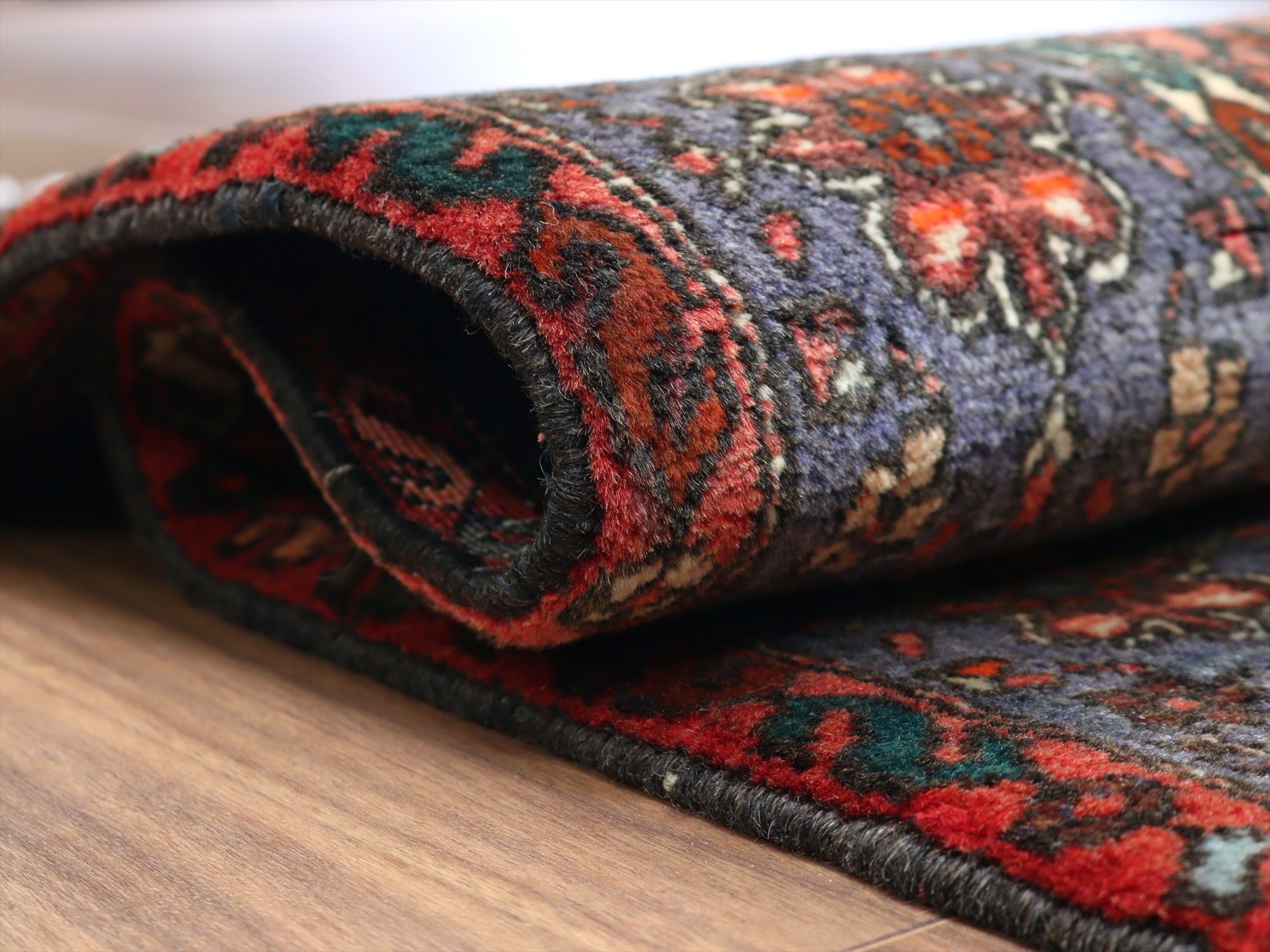 ウールがギュッと詰まっていてずっしりとした重みがあります。ベースを含めたラグの厚みは1.5cm程でふっくらとした厚みがあります。