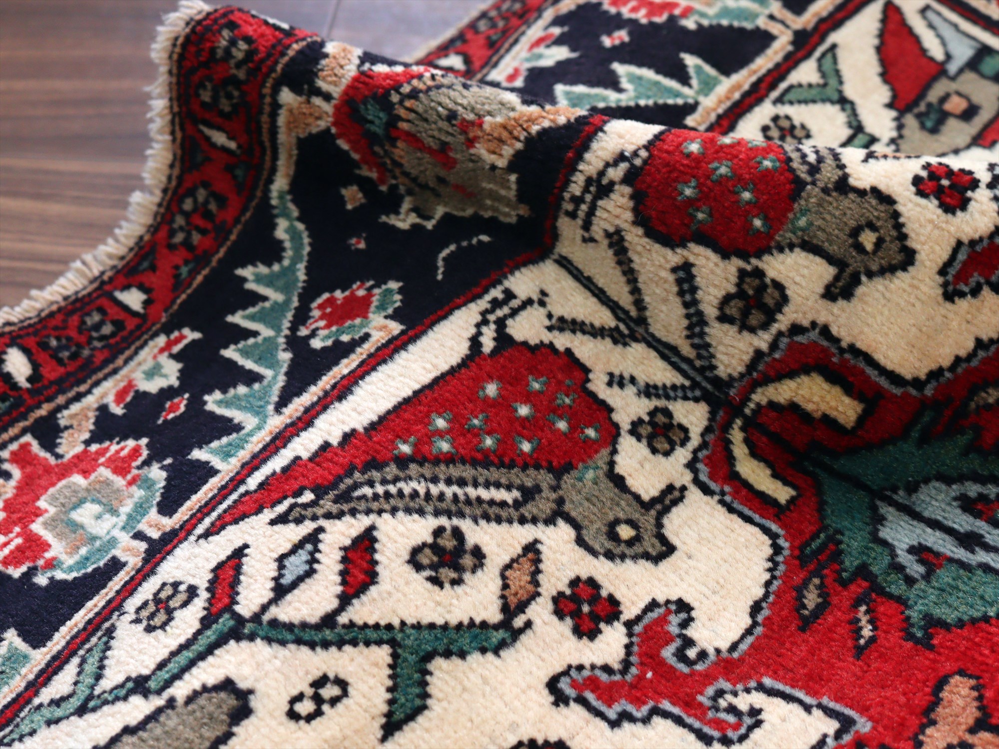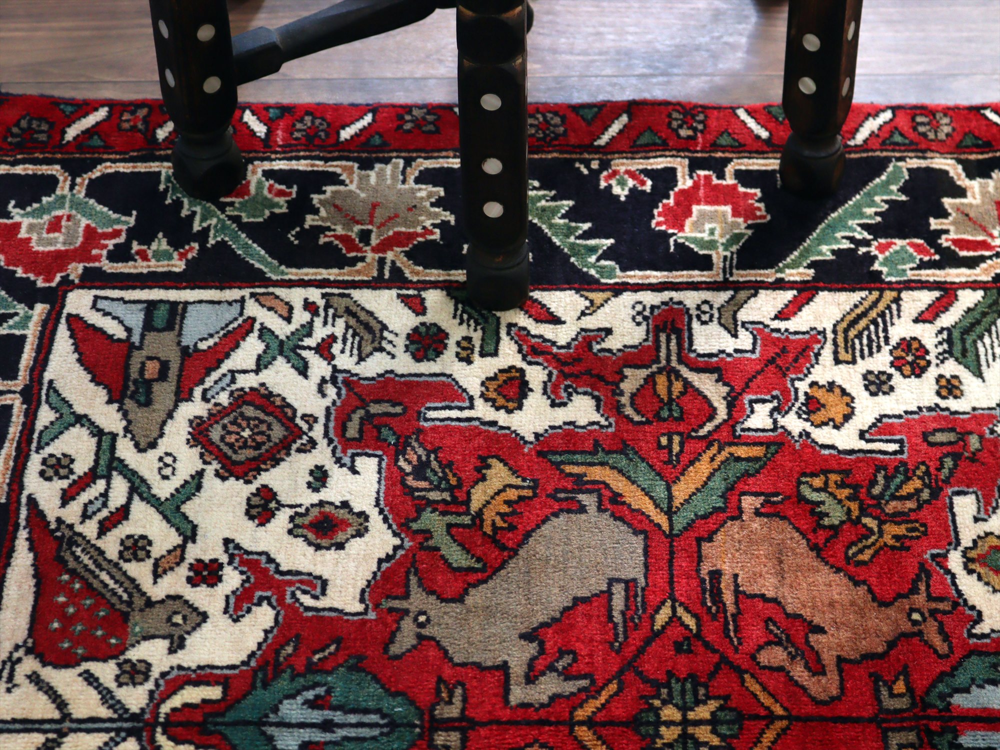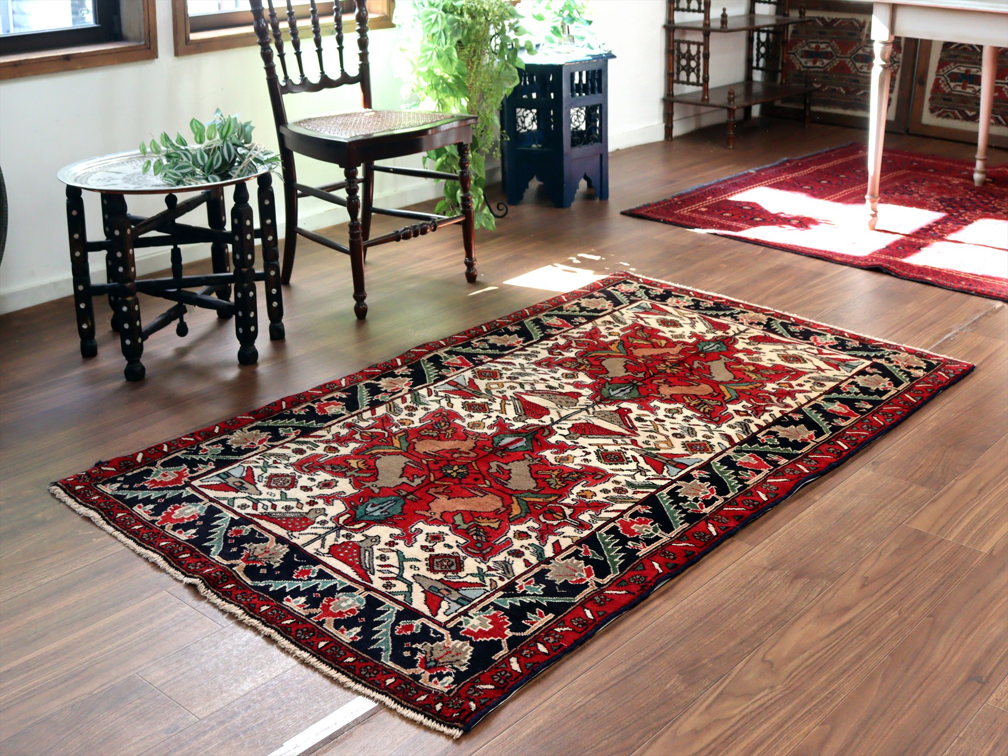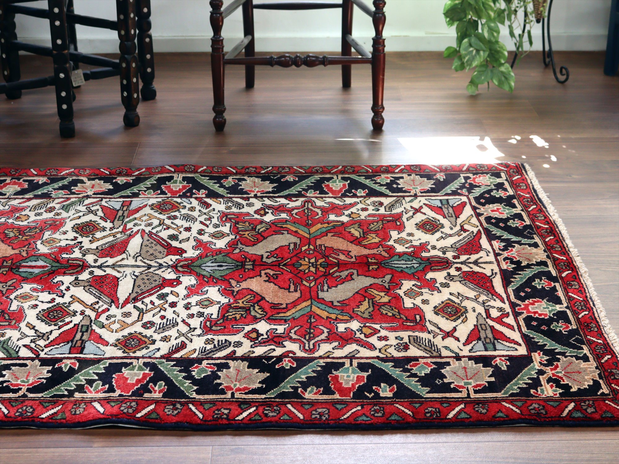 イランの手織り絨毯 バルーチ171×99cm 動物と花 トライバルラグ