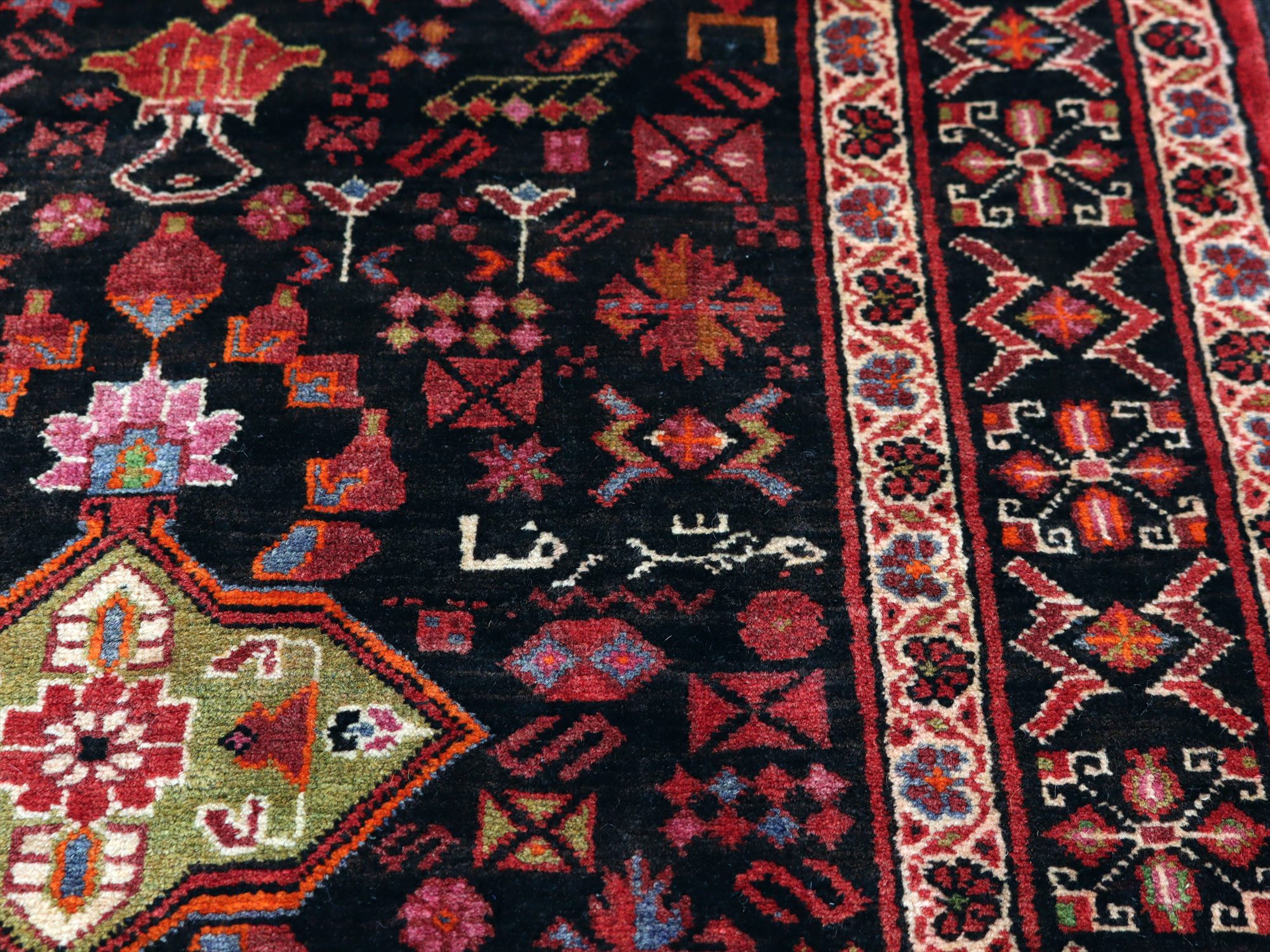 ベースを含めたラグの厚みは8mm程で、パイルはすっきりと刈られモチーフがきれいに表現されています。