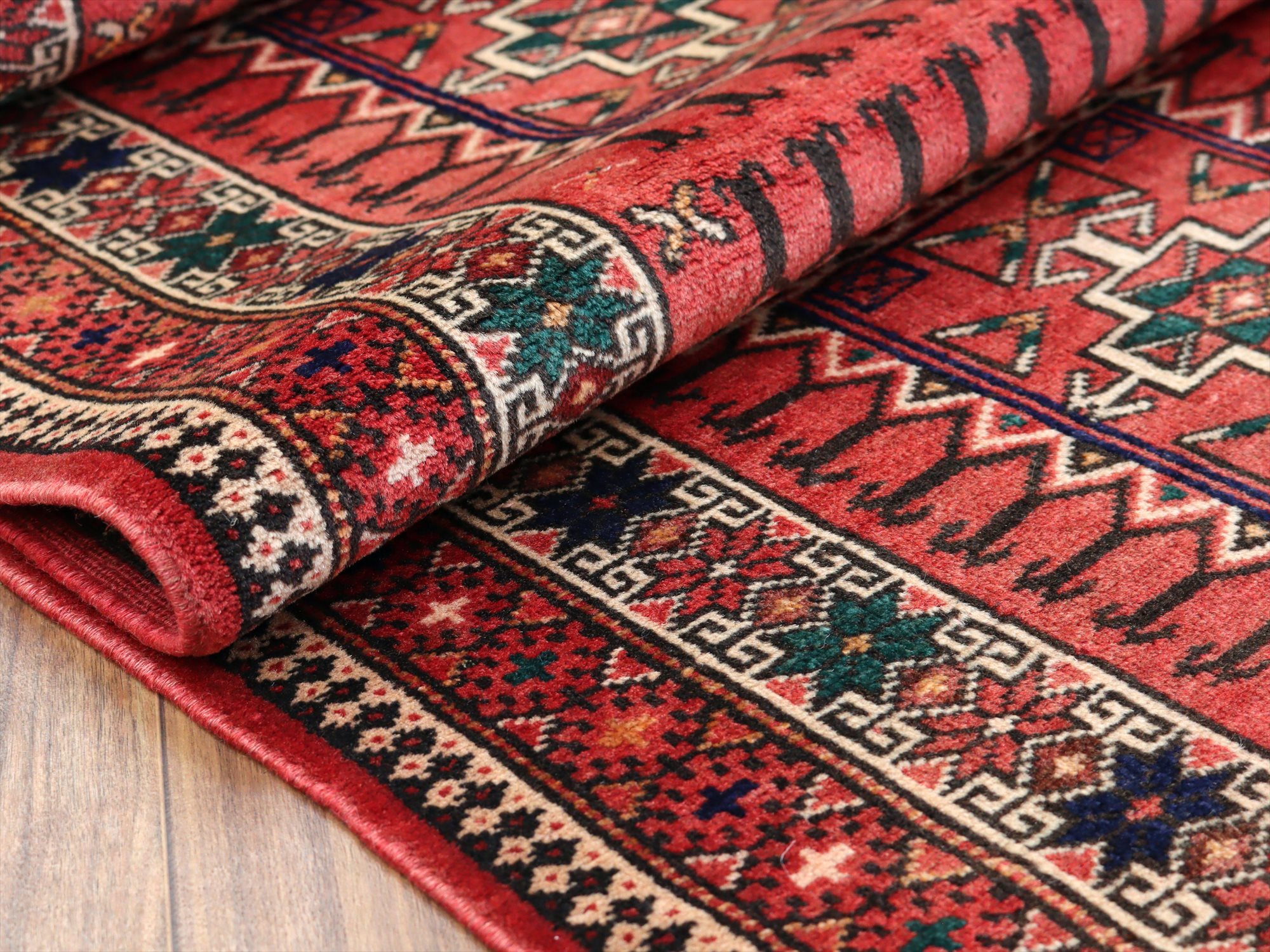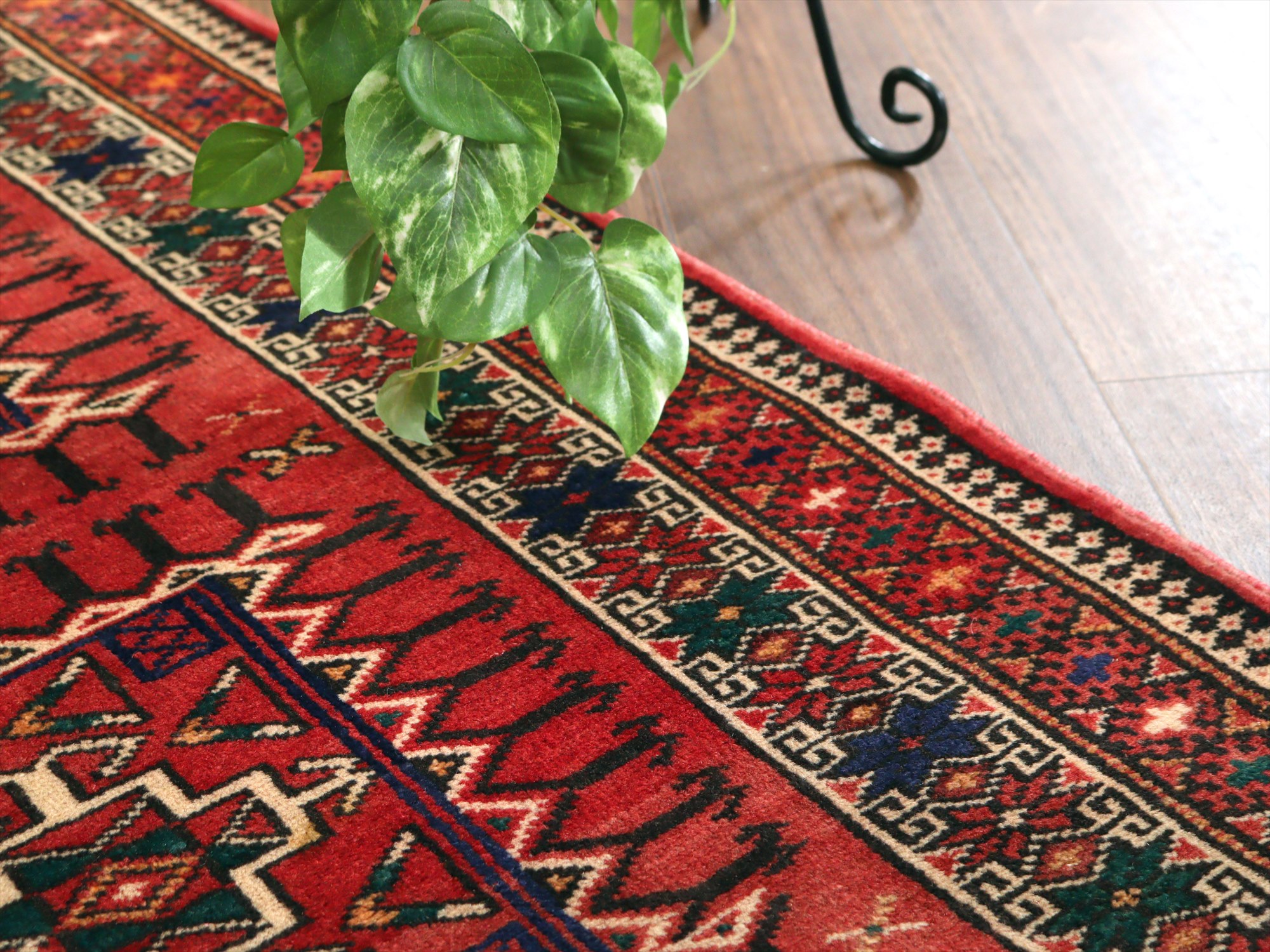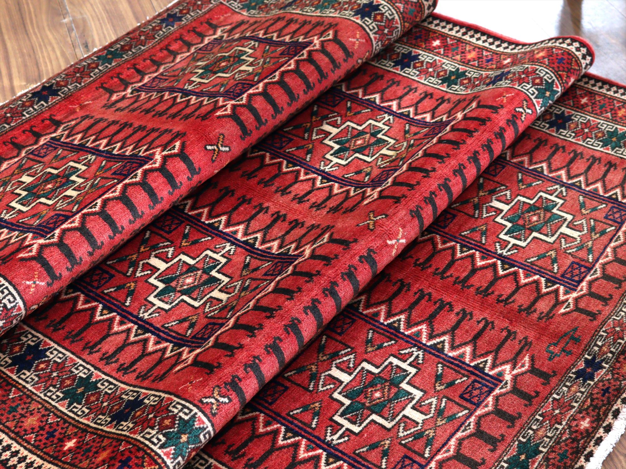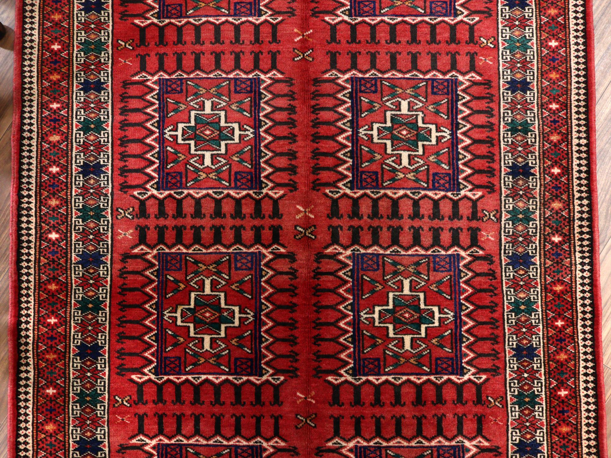 イランの手織りラグ トルクメン291×111cm 細長いサイズ 幾何学模様