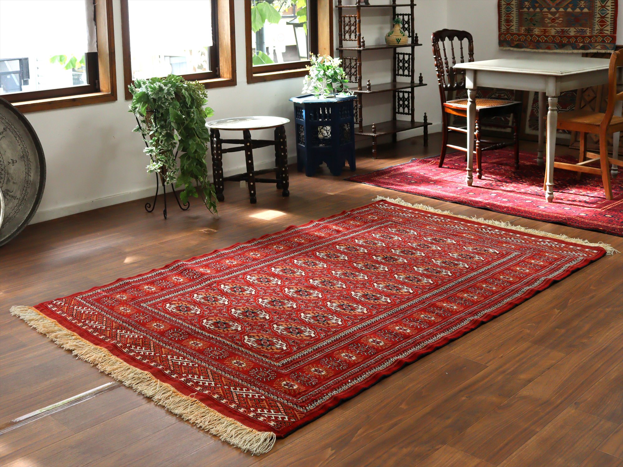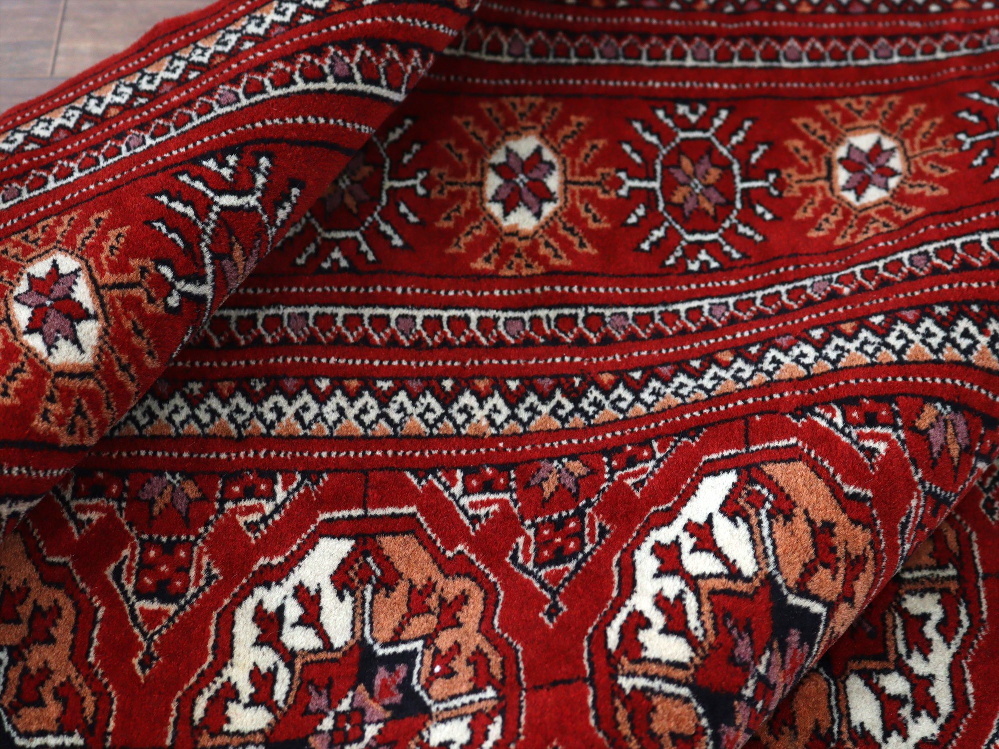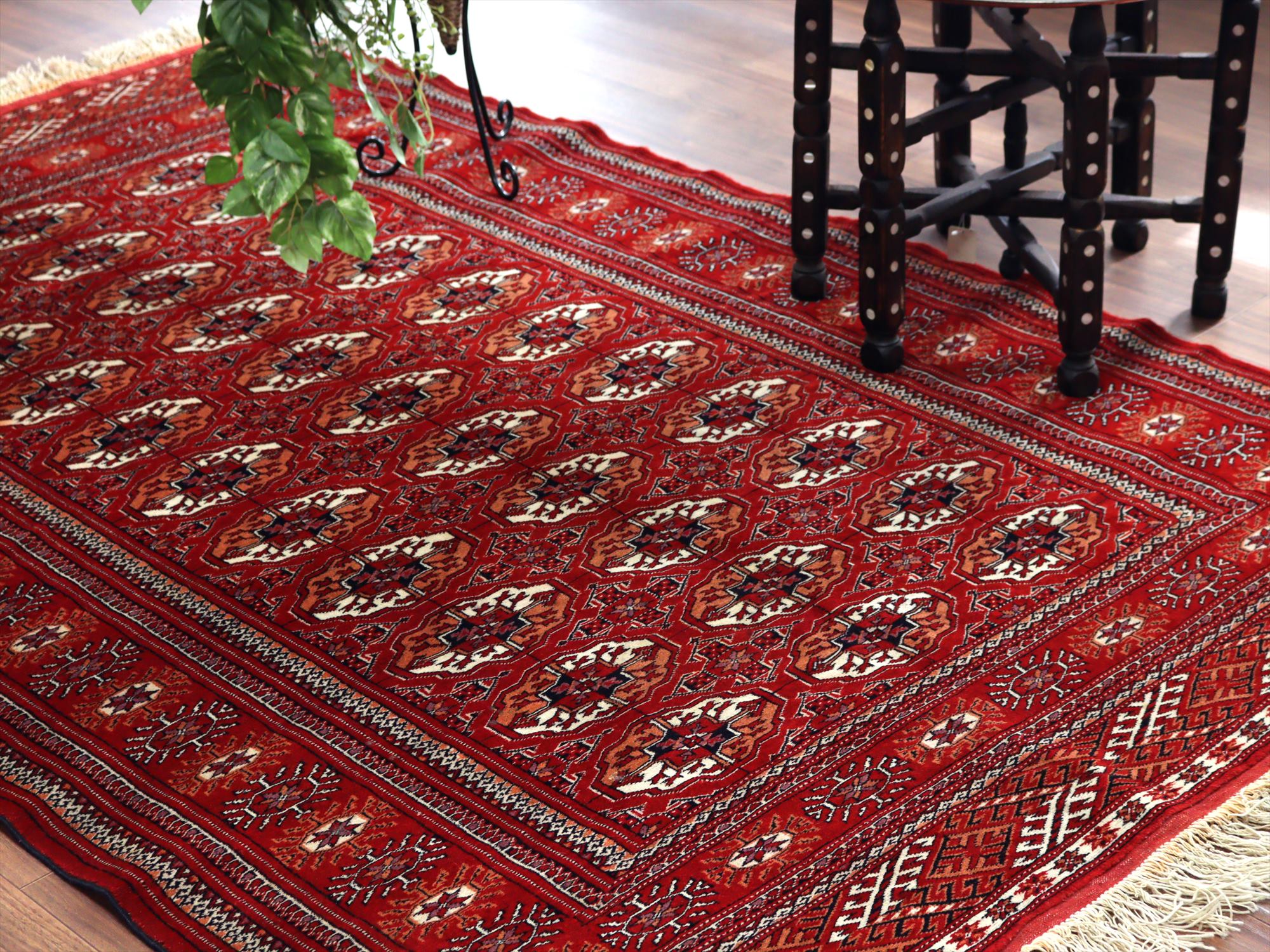 トルクメン族の絨毯 トライバルラグ208×134cm 連なるギュル文様 手織りラグ
